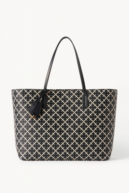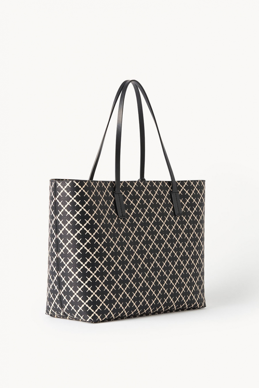 Mid-size tote bag in signaturpattern with double handels, sewn on innerpocket and leather details from By Malene Birger.- 100% Polyvinyl Chloride