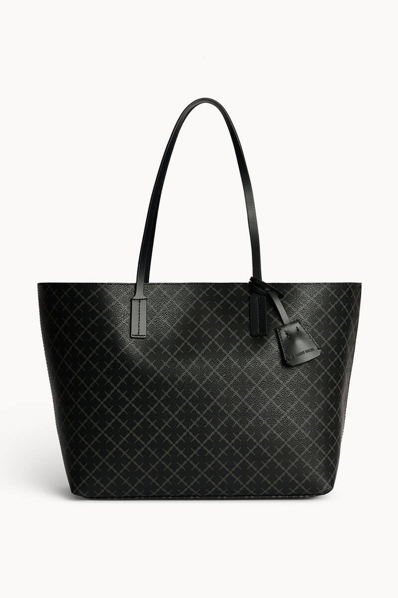 Mid-size tote bag in signaturpattern with double handels, sewn on innerpocket and leather details from By Malene Birger.- 100% Polyvinyl Chloride