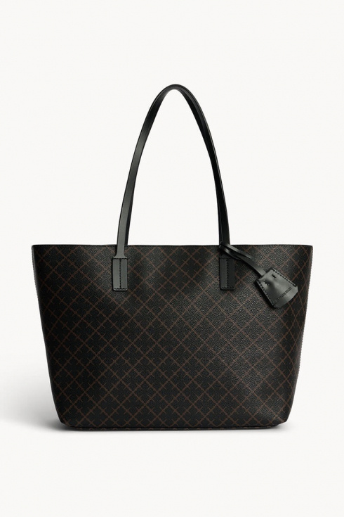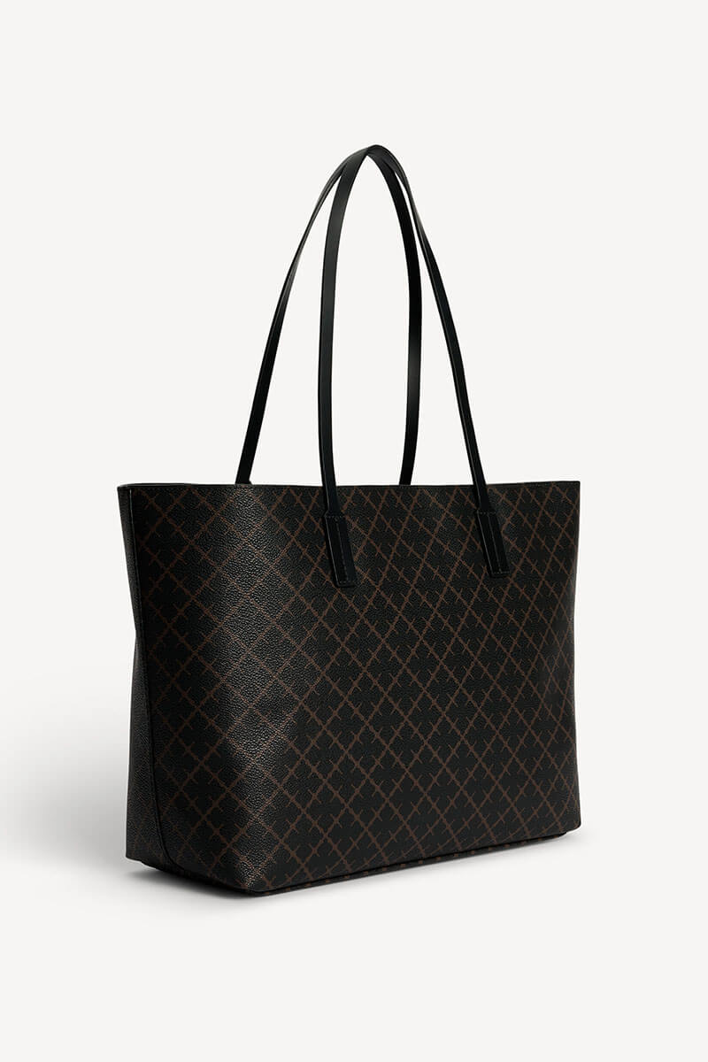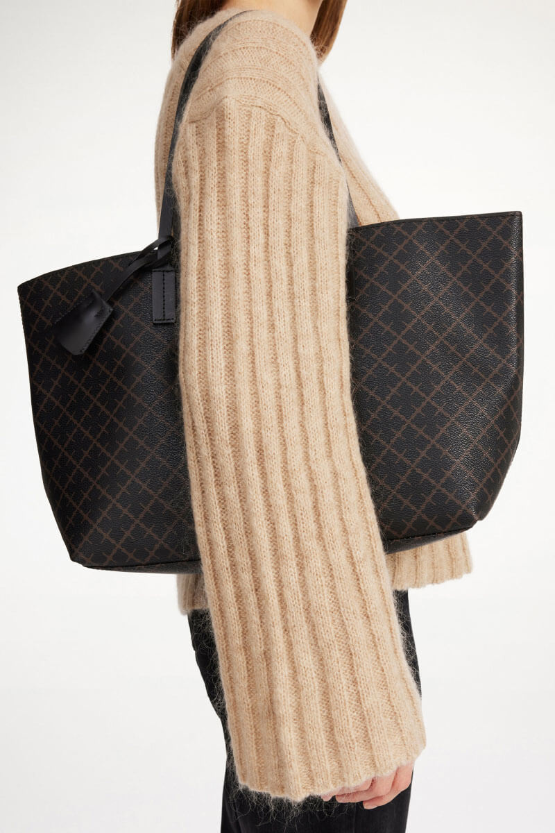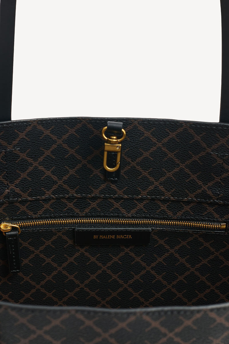Mid-size tote bag in signaturpattern with double handels, sewn on innerpocket and leather details from By Malene Birger.- 100% Polyvinyl Chloride