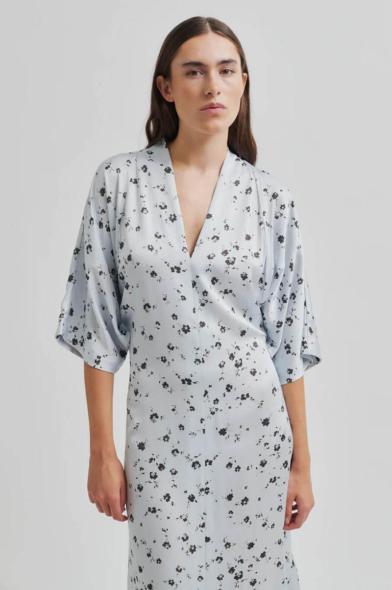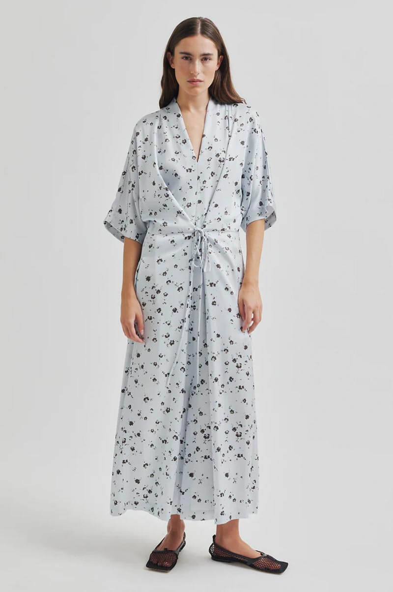 A maxi dress in airy material with a small floral pattern that is just as nice for a party as a summer lunch. You choose how you want to wear the dress with a tie in the front that becomes slightly relaxed with a nice draping or tie in the back for a more clean look.Patterned dress in a soft viscose blend with a v-neck, loose fit, matching belt at the waist and side pockets from Second Female.