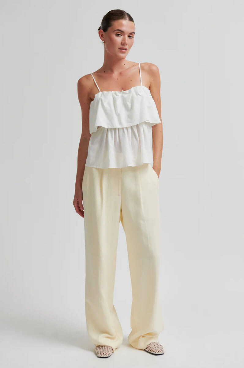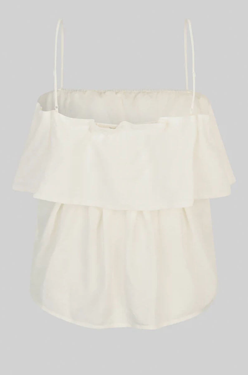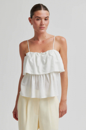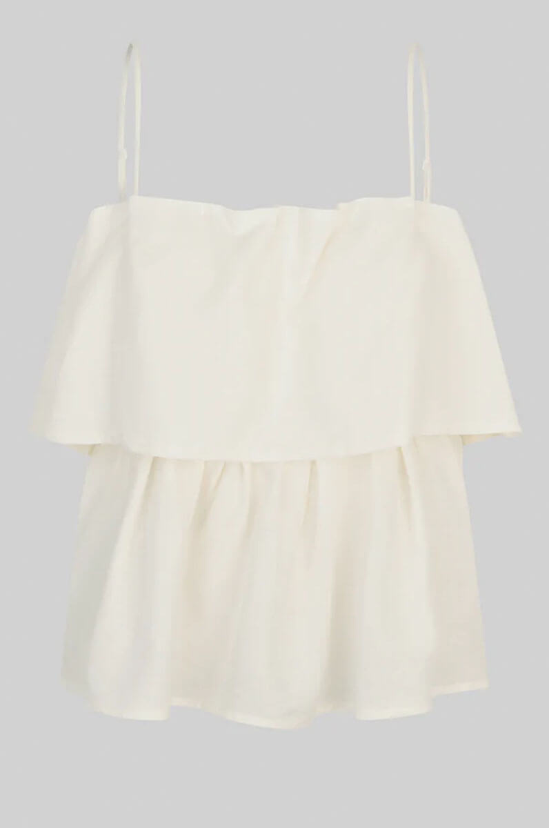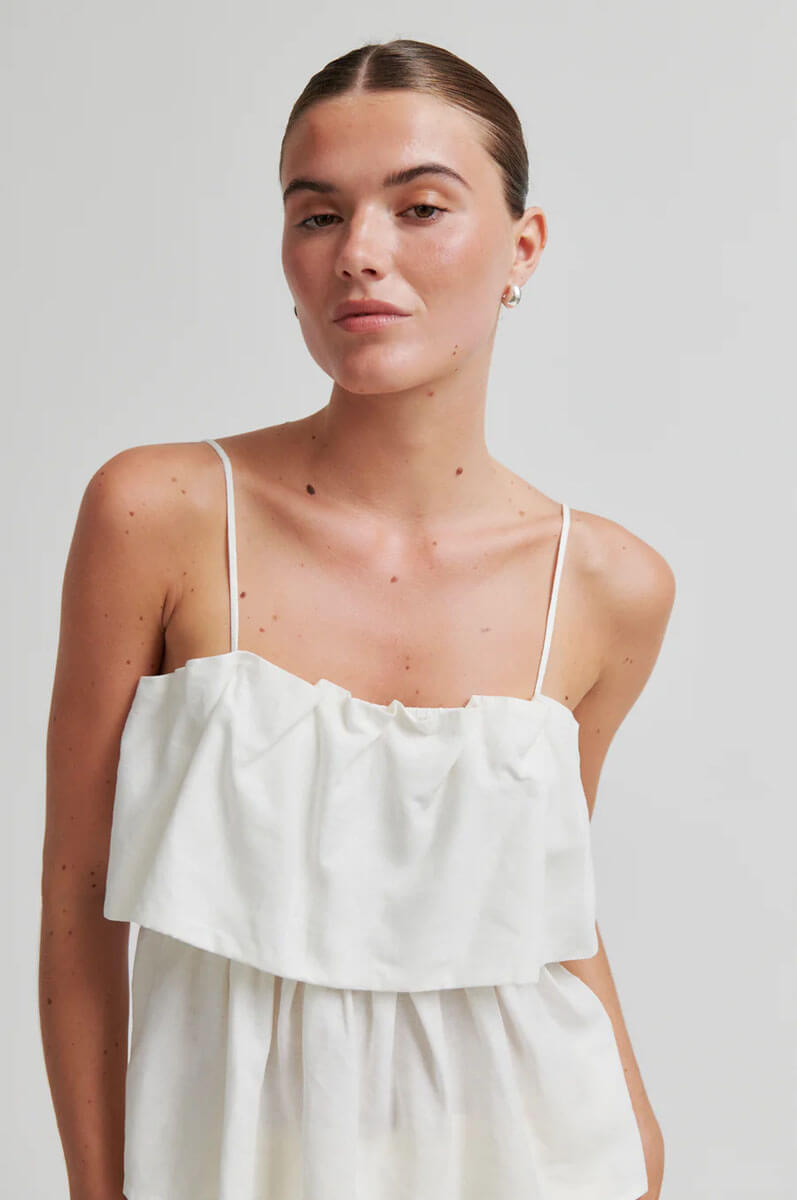 Second Female tiered top.The top is made in a lightweight linen-viscose blend. Featuring thin adjustable shoulder straps and elastic at inside of top hem. Frilled tier at bust for extra volume.