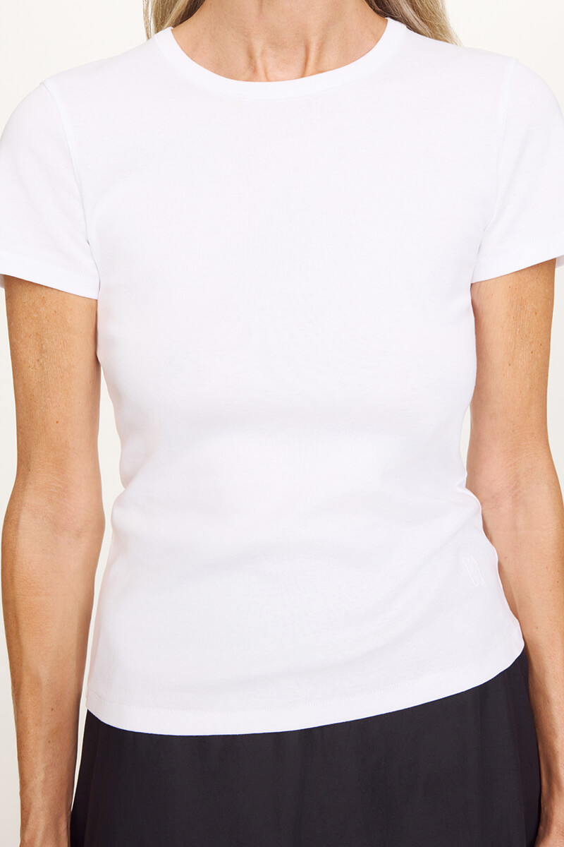 Come spring, summer and beyond, a minimalistic organic cotton T-shirt slots right into any lineup – such is the Alicia design. The short-sleeved T-shirt is detailed with nothing but a small, embroidered monogram. Use as a layering piece as the weather transitions.