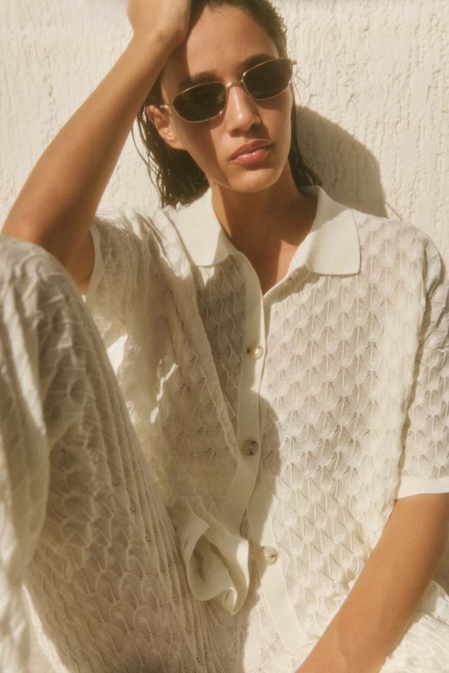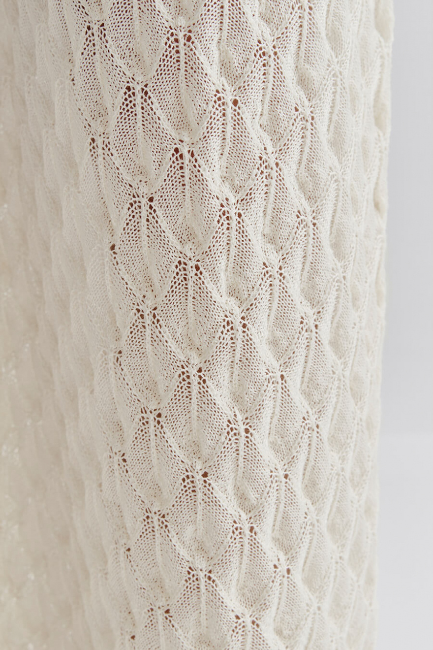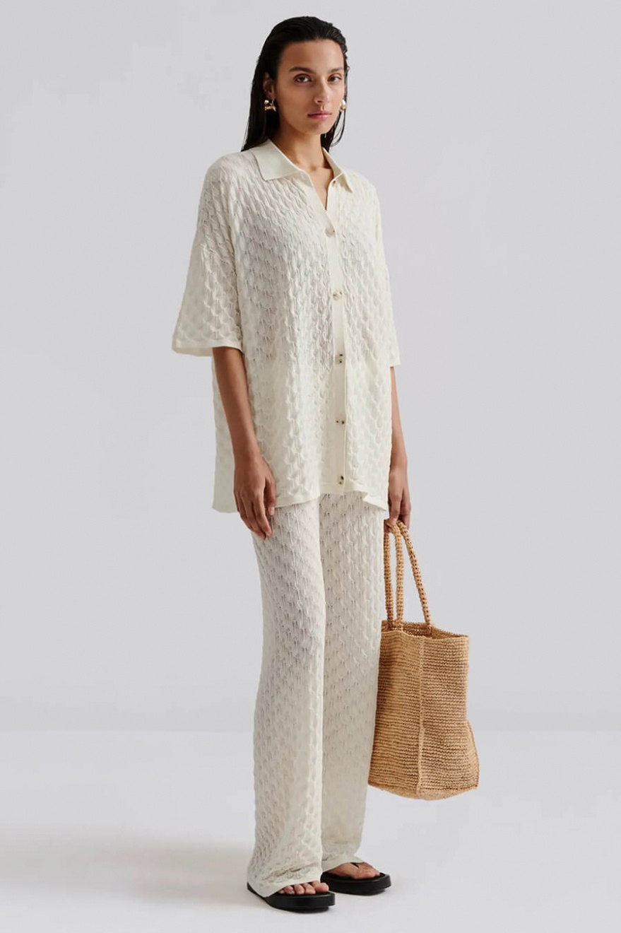 Crochet pants with high waist and wide legs - a dream in texture and silhouette. As obvious on the beach as in town, styled with an oversized shirt or a simple top. A timeless investment for summer!Crocheted trousers in a viscose blend with a high waist, elastic waistband, wide legs and slightly transparent from Malina.
