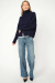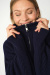 The loose-fitting ribbed navy sweater with a two-way zip is both casual and elegant. Wear it half-open over a silk blouse with tailored trousers for a modern office look, or tucked into straight-leg jeans and sneakers for a cool everyday look.Ribbed sweater in wool with a loose fit, high collar, dropped shoulder seams and a two-way zipper closure at the front from MosMosh.