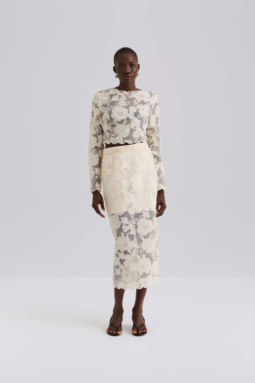 Anabelle Lace Midi Skirt, Vanilla