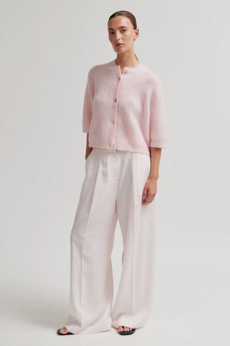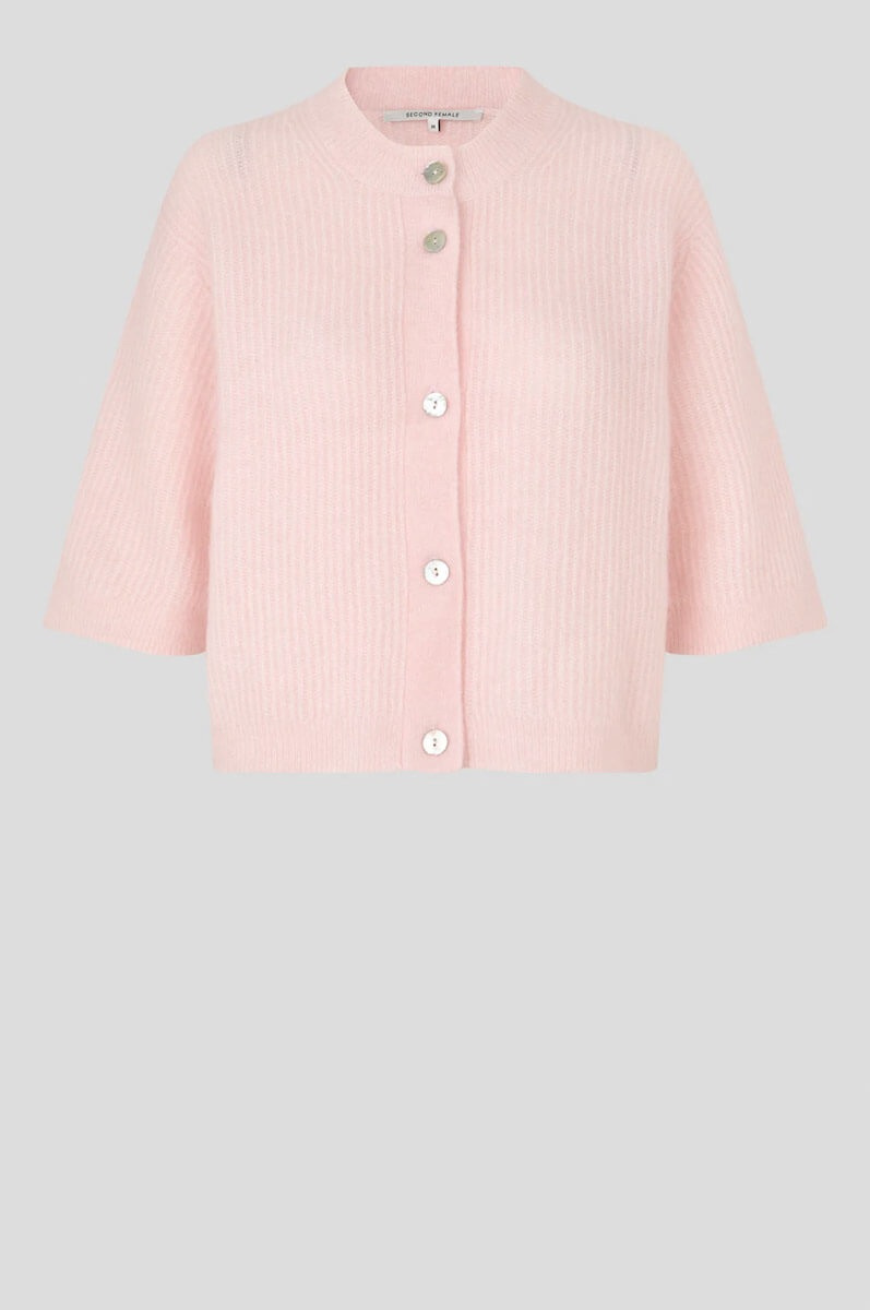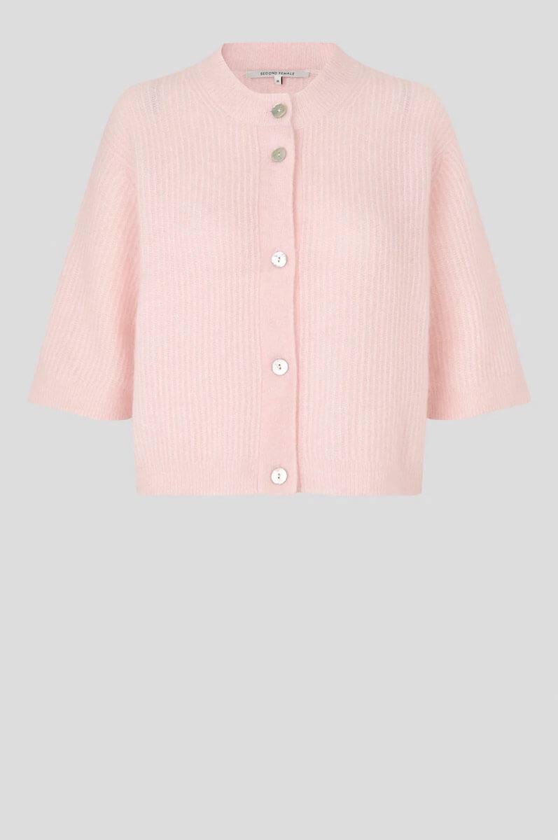 Meet the cardigan that makes every day a little softer. Knitted in a luxurious blend, with a perfect boxy fit and button detailing. Just as stylish with jeans as over a dress. A new favorite you'll never want to take off.Cardigan in a fluffy moahir blend with round neckline, short sleeves, ribbknitted edges, relaxed fit and falling shoulder seams from Second Female.