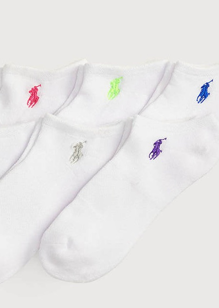 6-pack ankle socks with ribbknitted edge and embroidered logo in diffrent colours from Polo Ralph Lauren.- Onesize