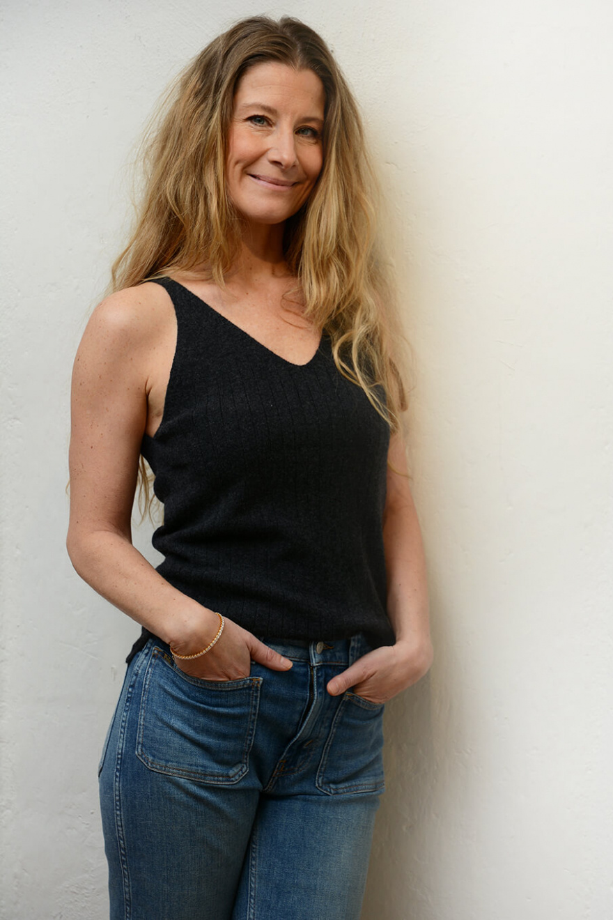 Ribbknitted tank top in a luxurious cashmere with regular fit, short slits, ribbed edge at the bottom, v-neckline front and back from Elin Maria Studio.100% Cashmre