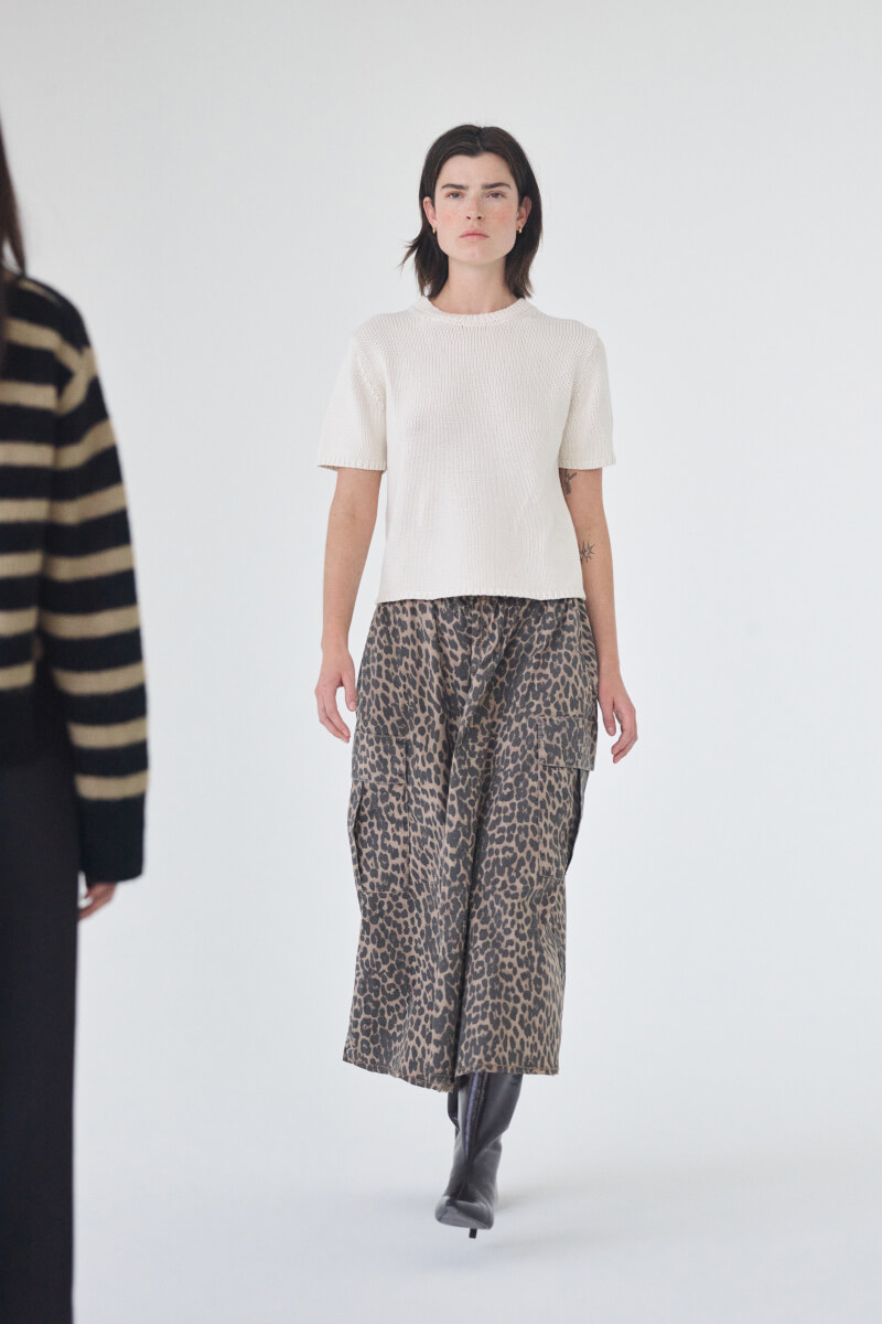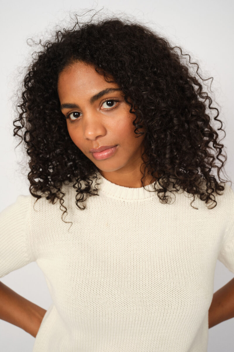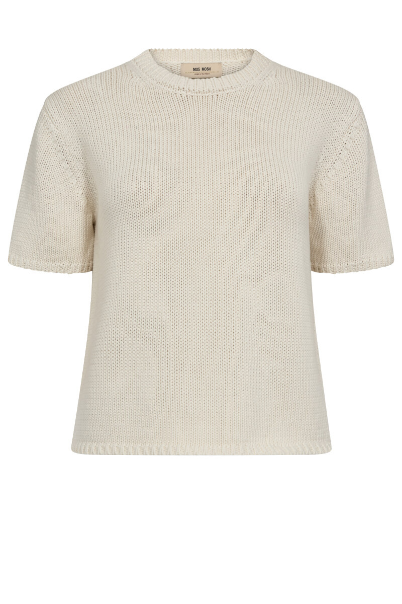Timeless knitted top in organic cotton – combining sustainability with Scandinavian elegance. Wear it with wide linen trousers and sandals, with jeans or silk.Knitted top in organic cottonwith round high neckline, short sleeves, ribbknitted edges and regular fit from MosMosh.