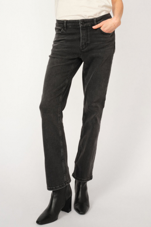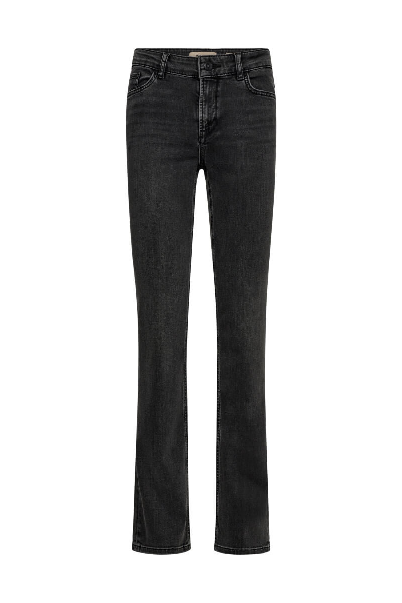Dark grey high waisted straight leg jeans – a stylish staple with an edge. Wear them with a white shirt and loafers for everyday wear, or with a cashmere sweater and heels for dinner. Flattering silhouette, timeless colour, easy to style.Jeans in a soft cottonblend with high waist, straight legs and stretch from MosMosh.