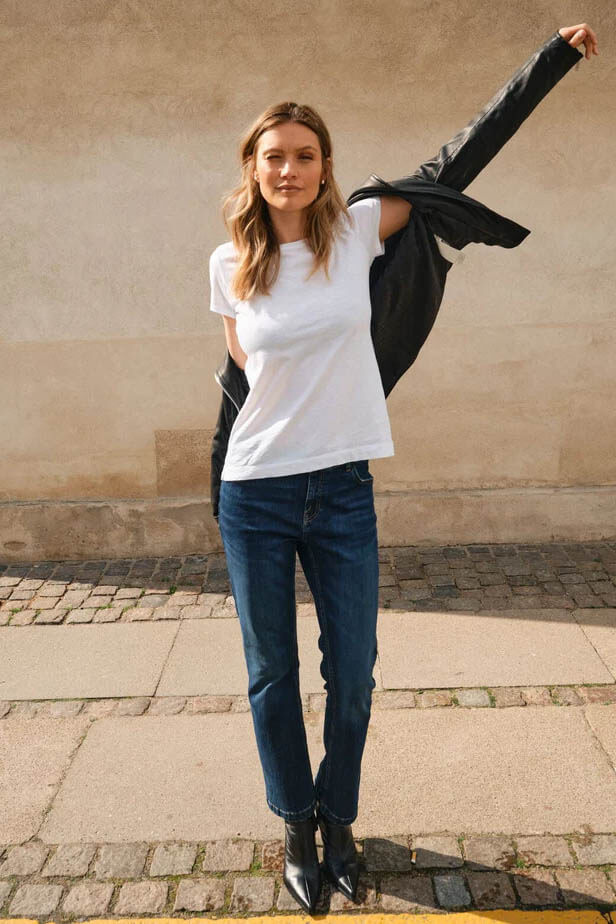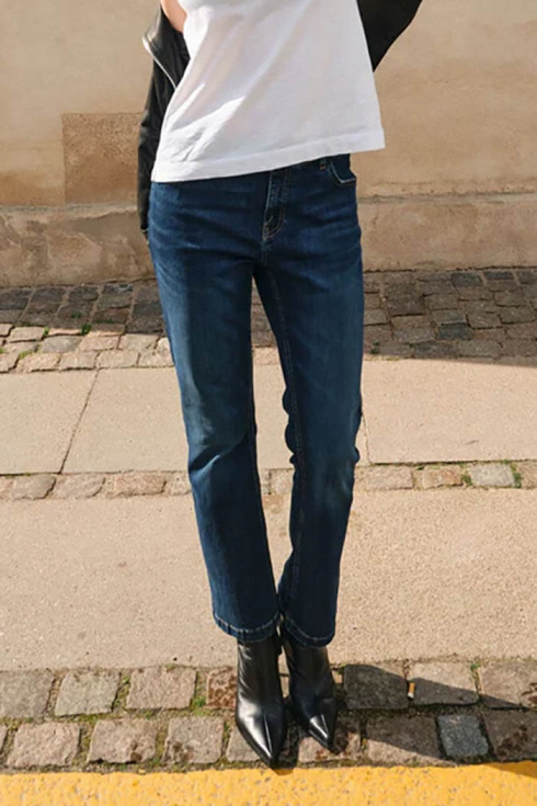 These mid-waisted jeans blend classic design with a modern fit – a subtle flare at the ankle creates an elegant silhouette that moves effortlessly with you throughout the day. Crafted in a stretchy denim that holds its shape while offering comfort, with thoughtful pocket details and a timeless wash.