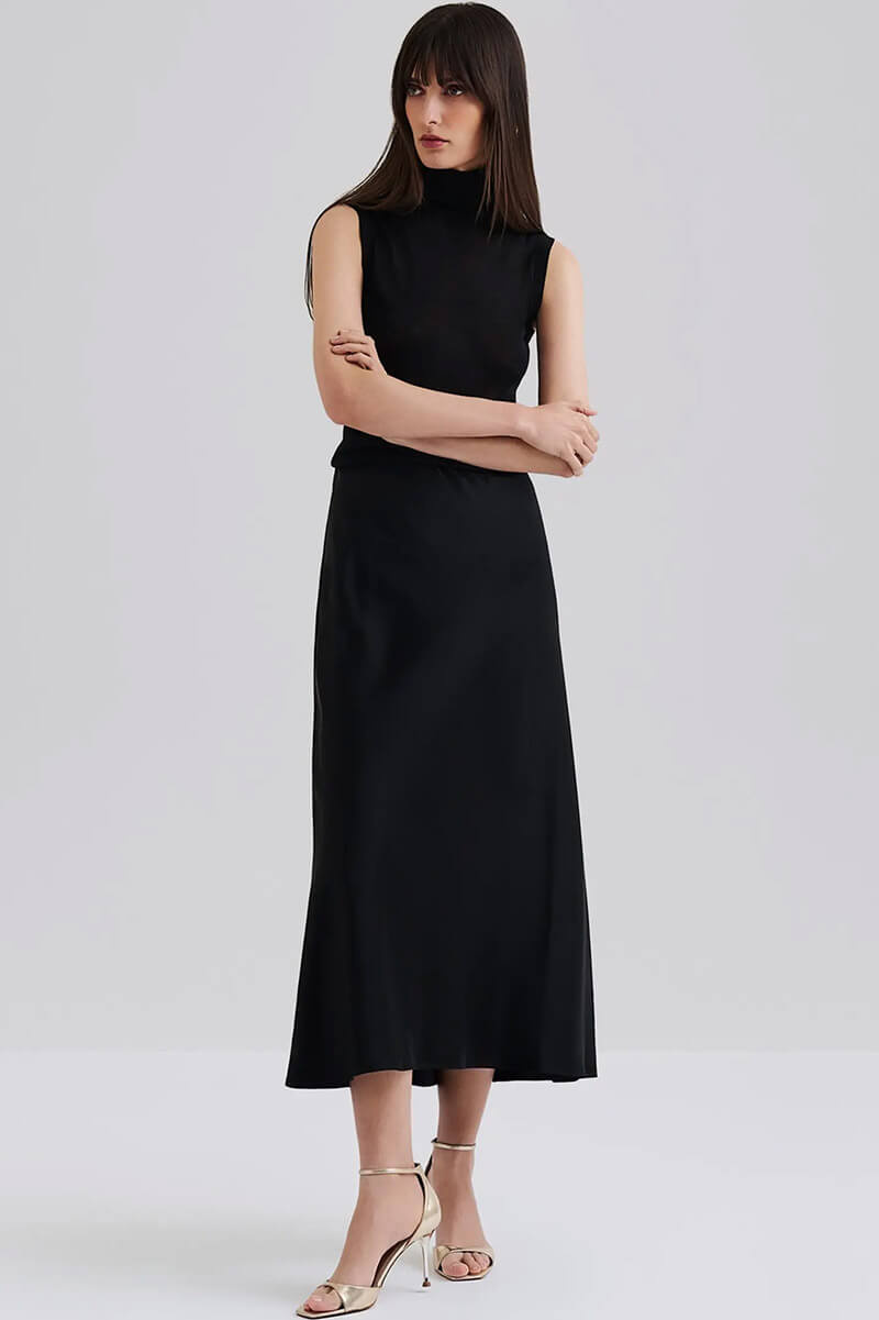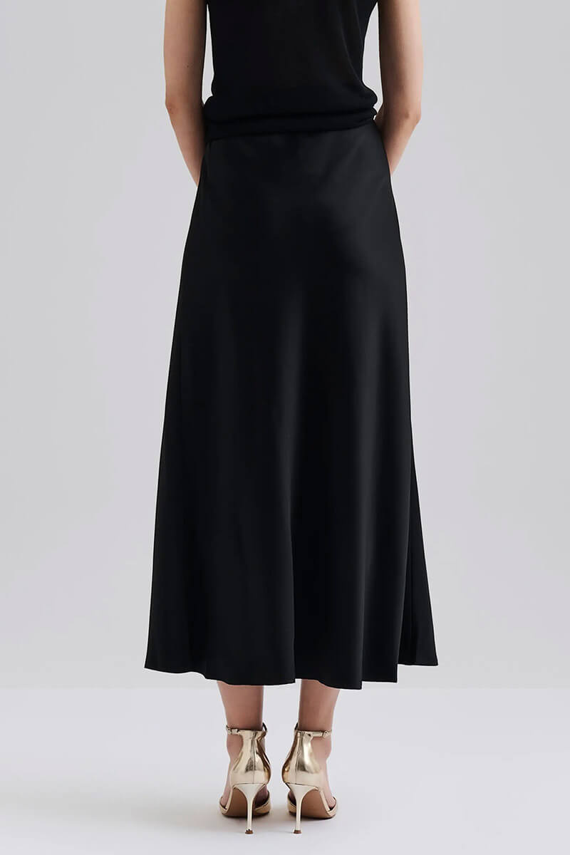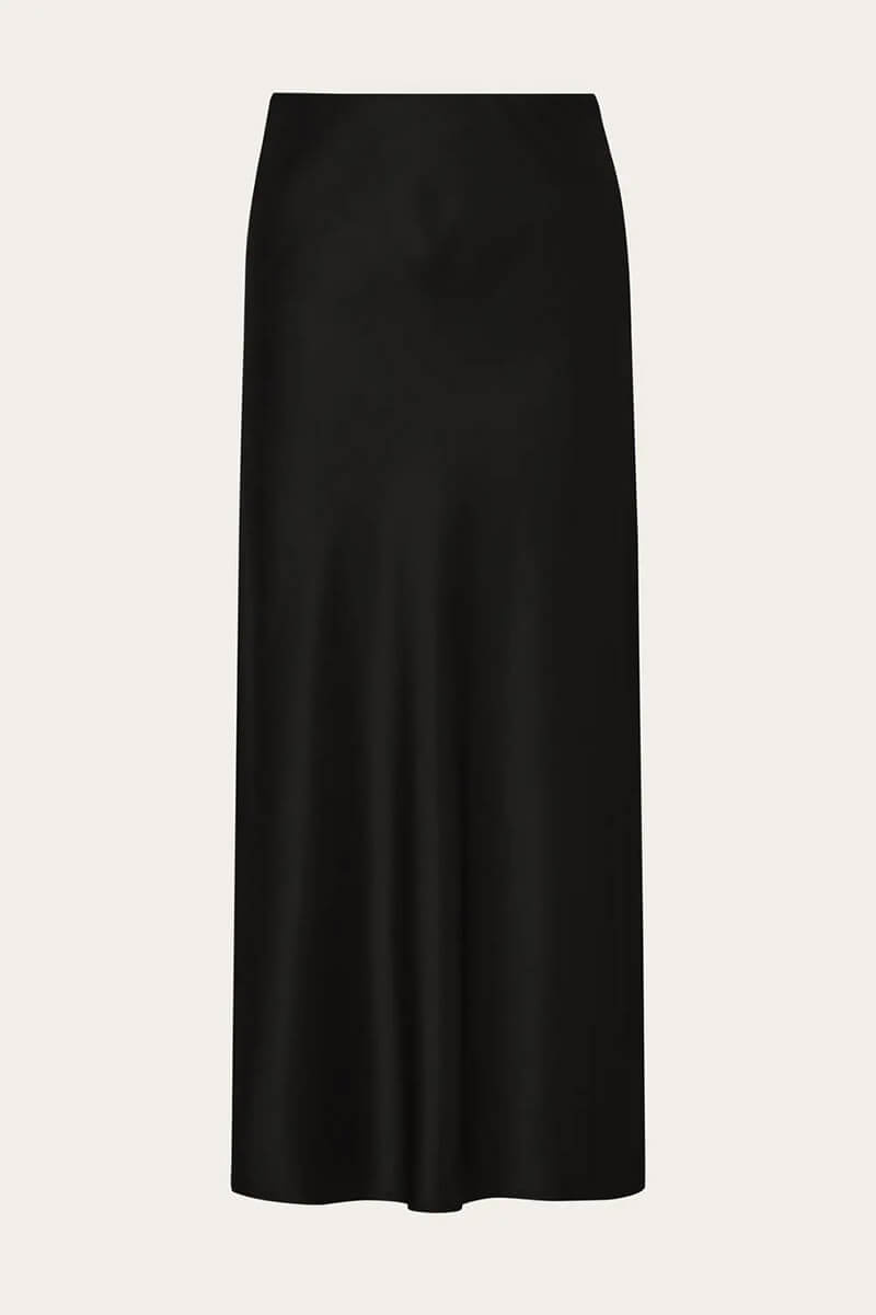 Aubree Satin Midi Skirt, Black