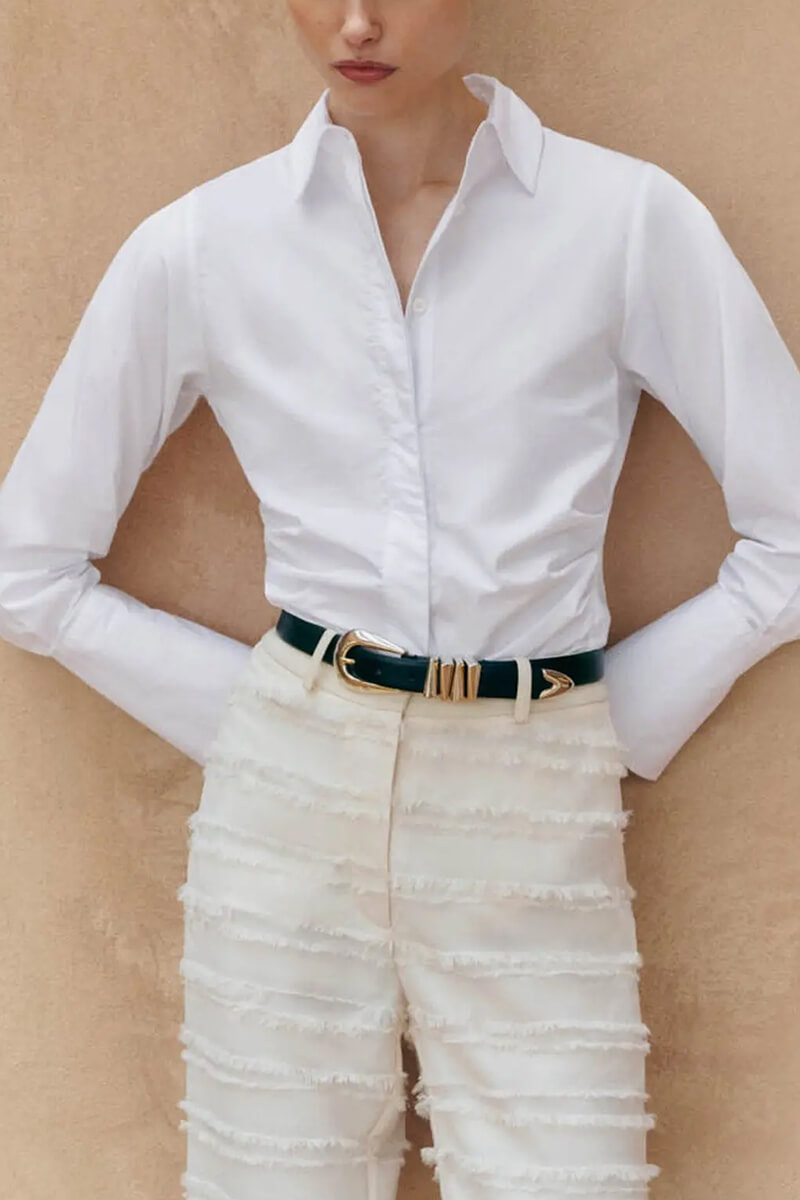A classic leather belt with a gold-toned buckle – a timeless accessory that elevates any outfit. Its clean, refined design makes it just as suitable for jeans as for a dress or blazer, while the adjustable buckle ensures the perfect fit.