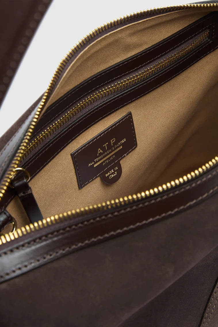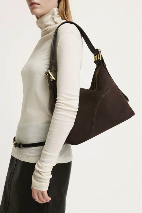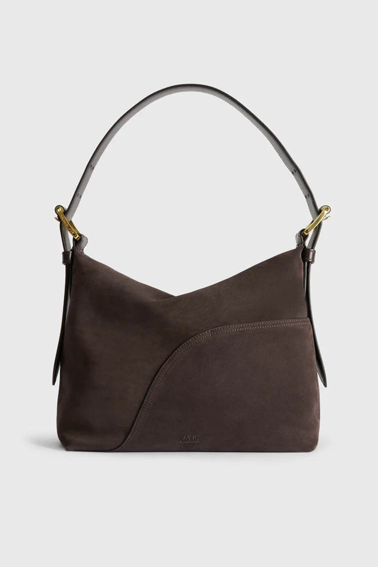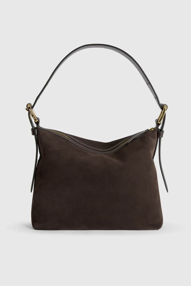 Bassanina is a slouchy tote handmade in Italy from soft suede. Featuring gold-toned details, she’s perfectly sized for day-to-night and can be worn on your shoulder or arm.