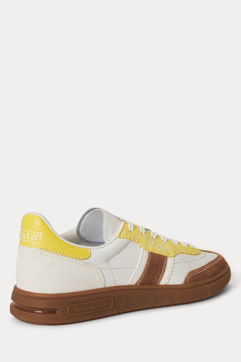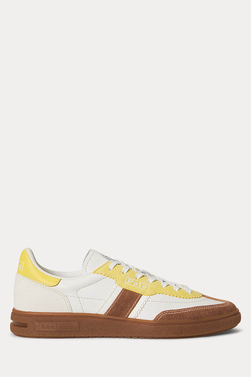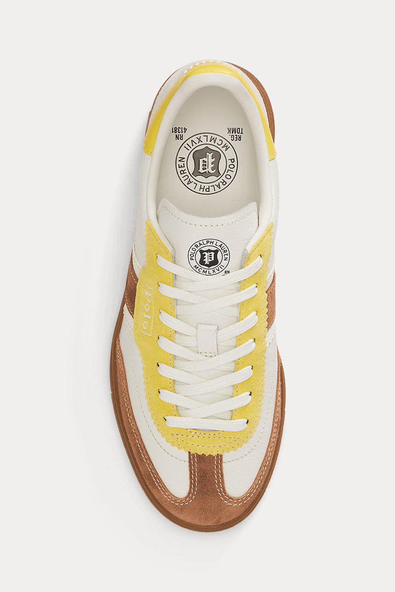 Bedford Suede Trainer, White/Yellow/Teak