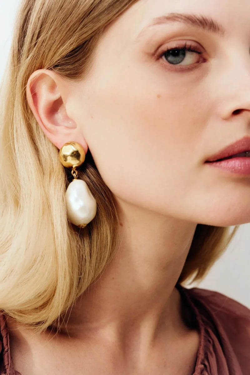 The Big Organic Pearl Earring is a statement piece that impresses with a large, organically shaped pearl at its center. The design captures the raw beauty of nature while combining it with timeless elegance. This earring is the perfect choice for those who love eye-catching jewelry and want an accessory that enhances both everyday looks and special occasions.