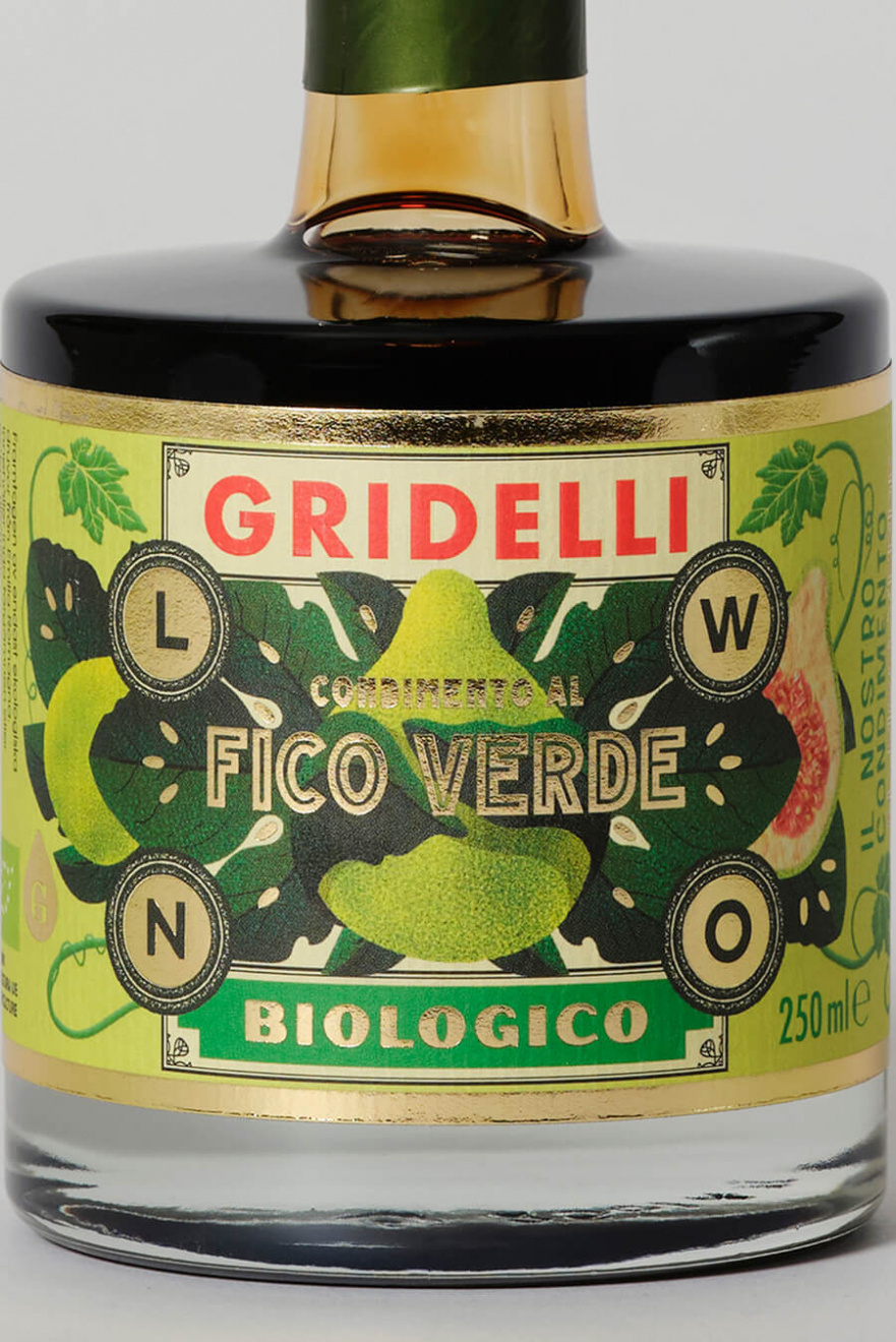 Wonderful fruity organic balsamic made of grapes from Emilia-Romagna, Italy and consists of 96% Aceto Balsamico di Modena and 4% infusion of green figs and natural aromas from Gridelli.Not only do all Gridelli's products have a beautiful design that makes them a nice interior detail in the kitchen, they are also of the highest quality. Drizzle this luxurious balsamic over the salad or with cheese on the cheese tray.