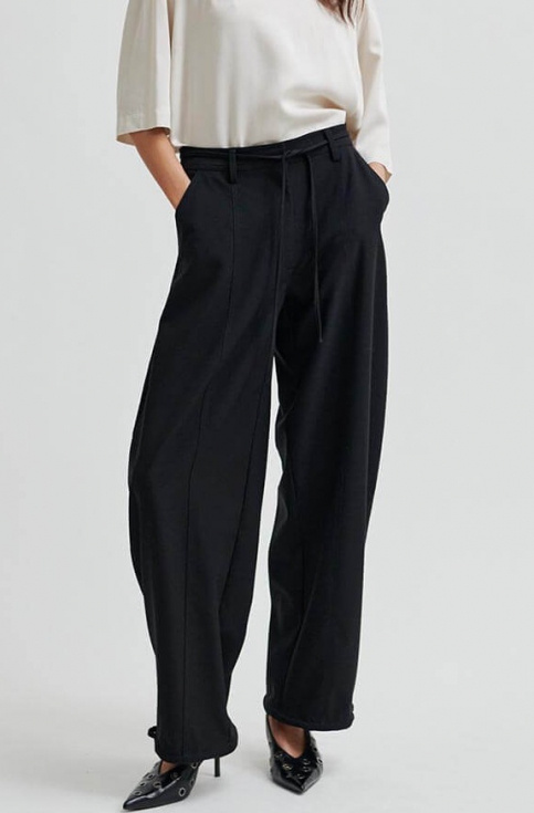 These trousers feature refined details that let you switch up your look depending on the outfit. Style them elegantly with a blouse or pair with a cozy knit for a more relaxed vibe. The decorative tie at the waist and adjustable drawstring at the hem allow you to wear them loose or cinched – perfect if you commute by bike.