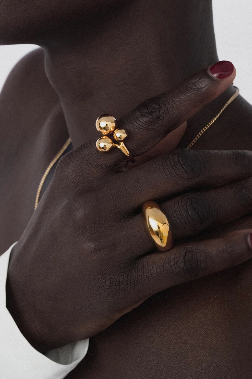 This chunky gold ring is a perfect statement of modern elegance. With its timeless design, it adds a touch of luxury to every outfit!Ring made in sterling silver with 18K gold plating from Syster P.