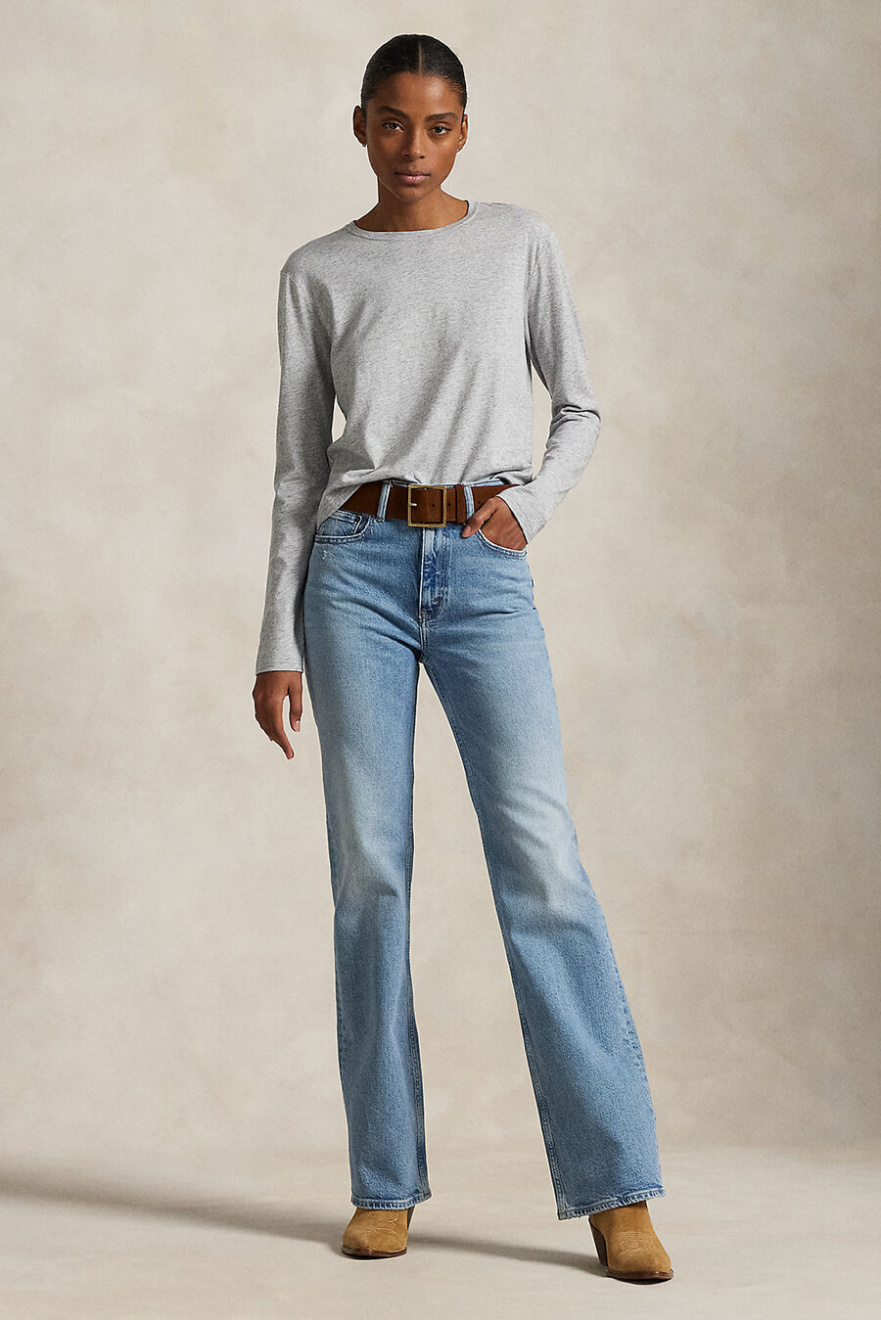 These light, perfectly worn jeans have that relaxed yet sophisticated fit we all dream of. High waisted, straight legs and endless styling possibilities – a wardrobe must-have.Jeans in soft cotton with high waist, slim fit nad slightly wide legs from Polo Ralph Lauren.