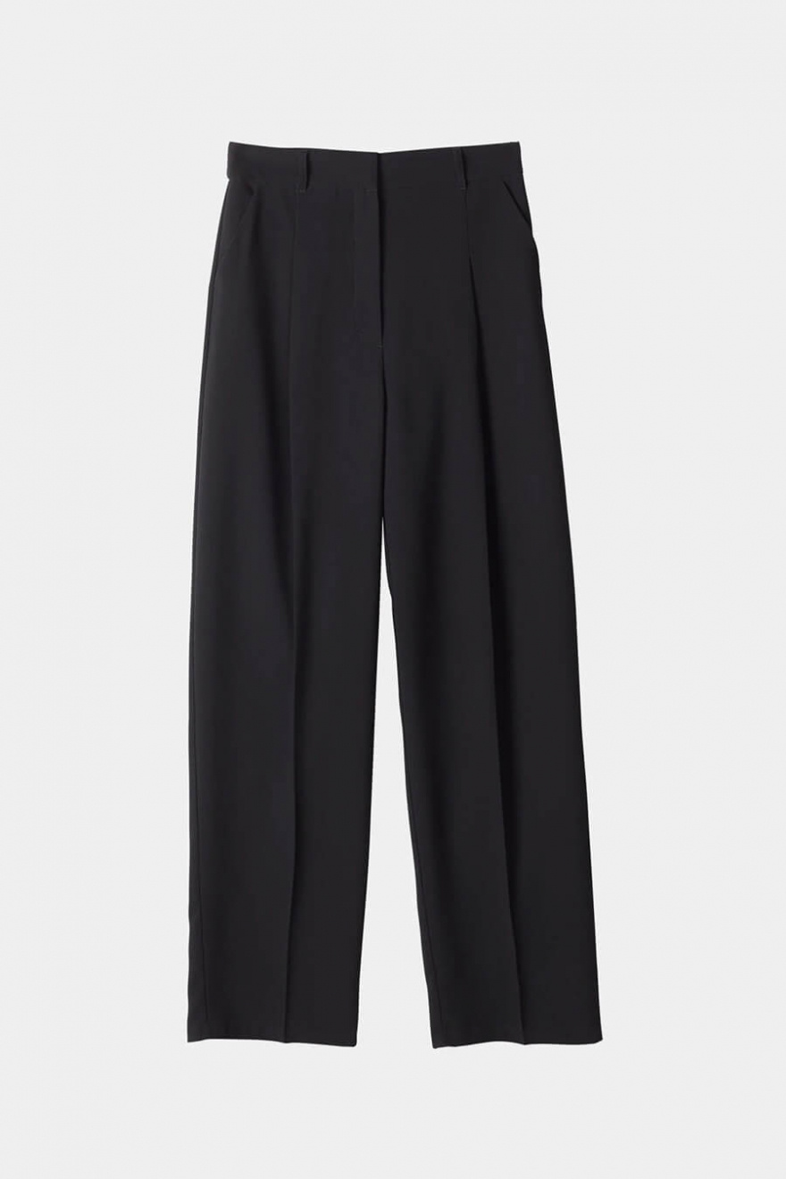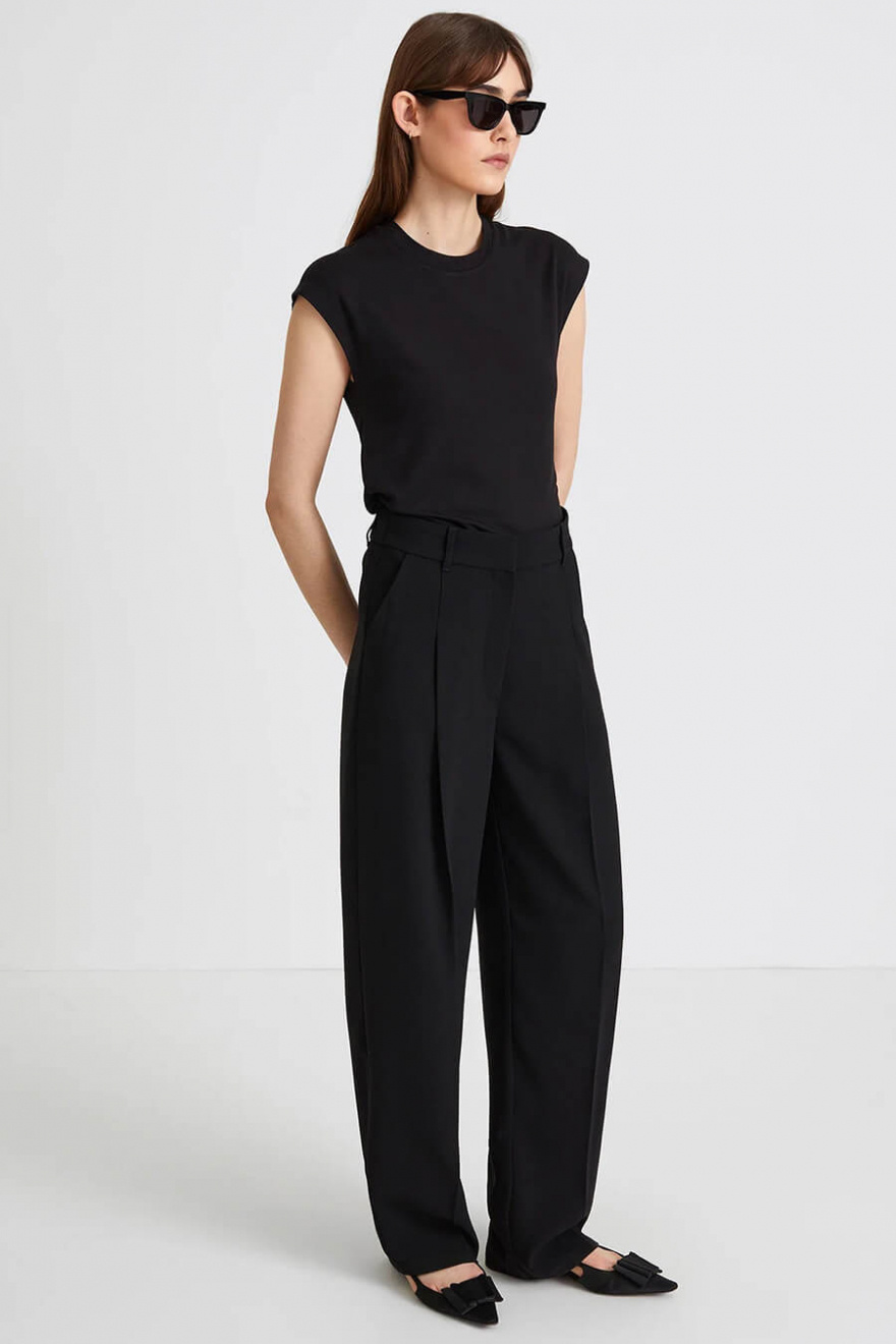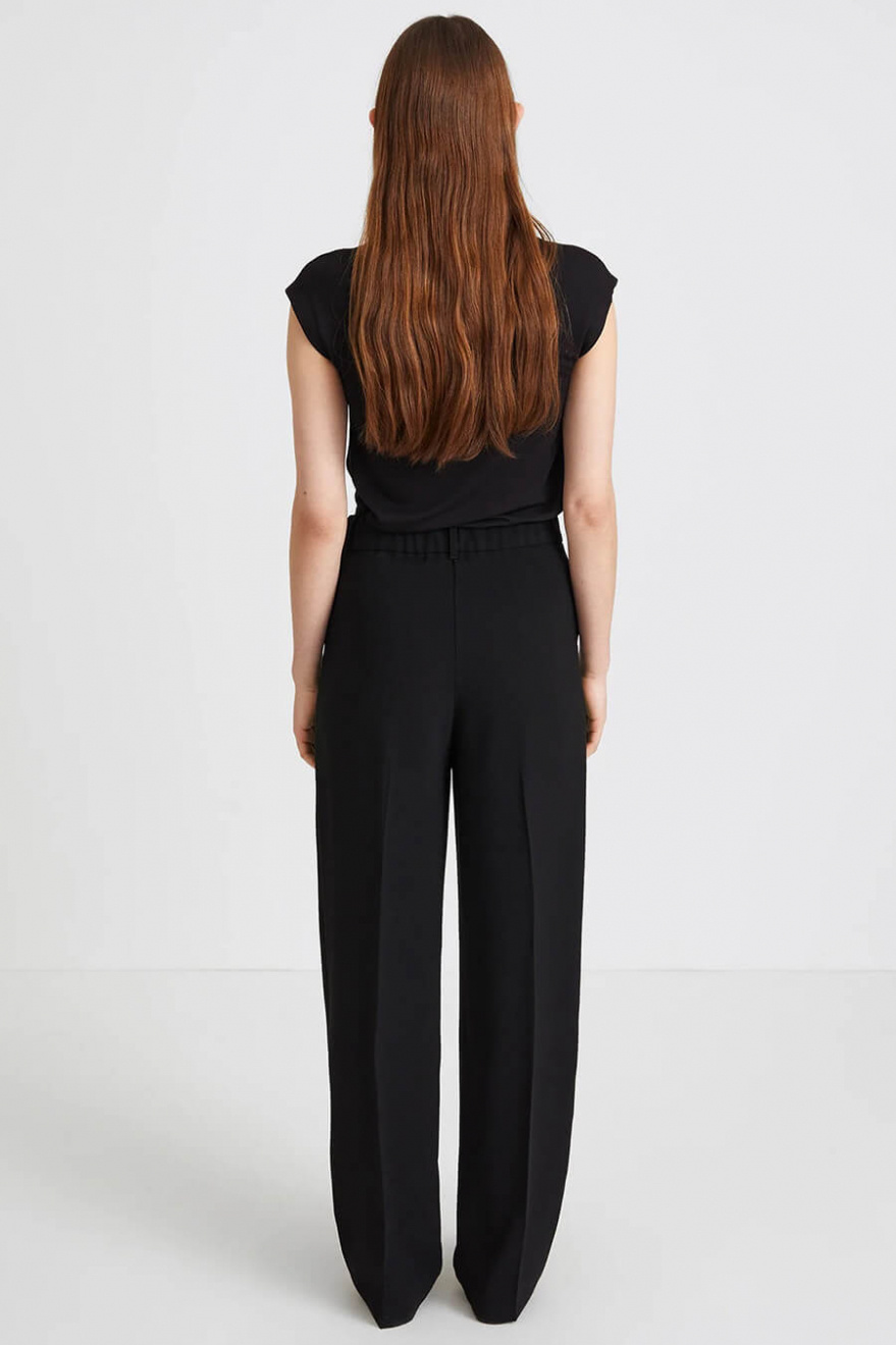 Upgrade your wardrobe with these stylish black trousers. With a sophisticated silhouette, perfect for both work and evening wear. A timeless garment that always delivers style and comfort!Trousers in a recycled blend with front pleats, full length, tapered fit, high waist, elasticated back and concealed zip front closure from Stylein.