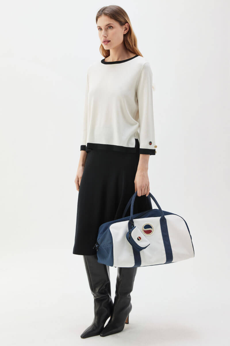 Busnel Canvas Heritage Bag, White & Marine