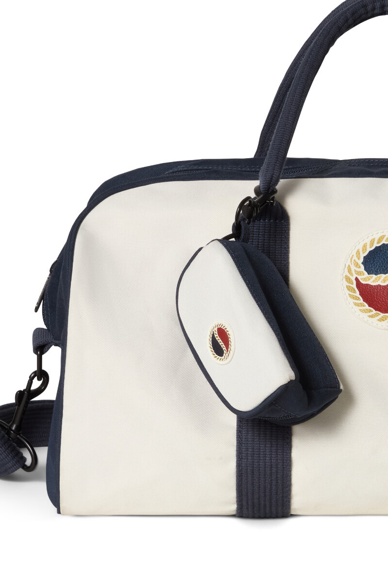 Heritage Bag crafted from durable polyester canvasis a nod to the iconic Busnel sports bag that was first launched in the 70's.Weekend bag in canvas with removable adjustable shoulder strap, double handles, zip closure at the top and removable key pouch from Busnel.