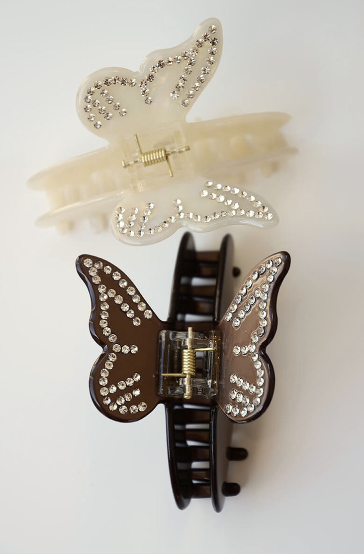 A more fun hair claw with a decorative butterfly and handmade details with stones from Elin et Acc.- 100% Cellulose Acetate