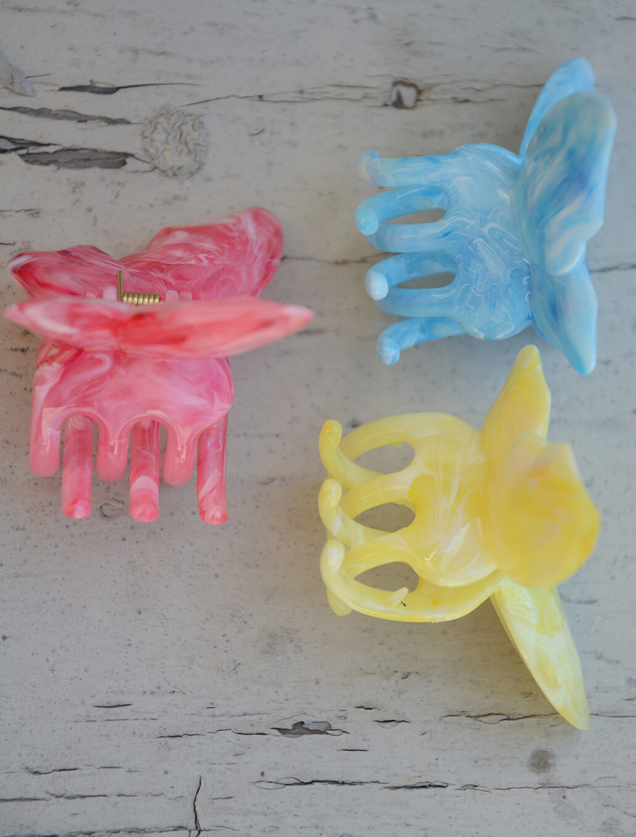 Hair claw shaped as a butterfly and is made in cellulose acetate that makes each hair claw unique in its appearance from Elin et Acc.- 100% Cellulose Acetate