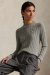 Cable-Knit Cotton Crewneck Sweater, Fawn Grey Heather