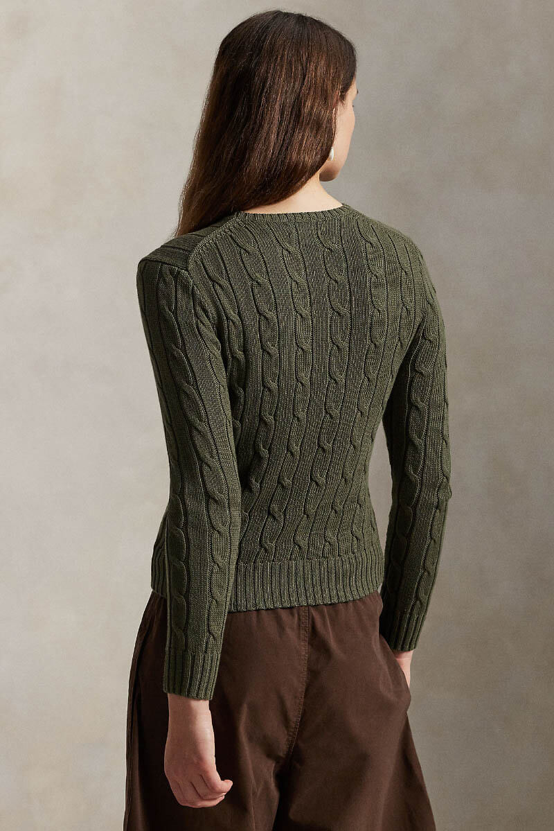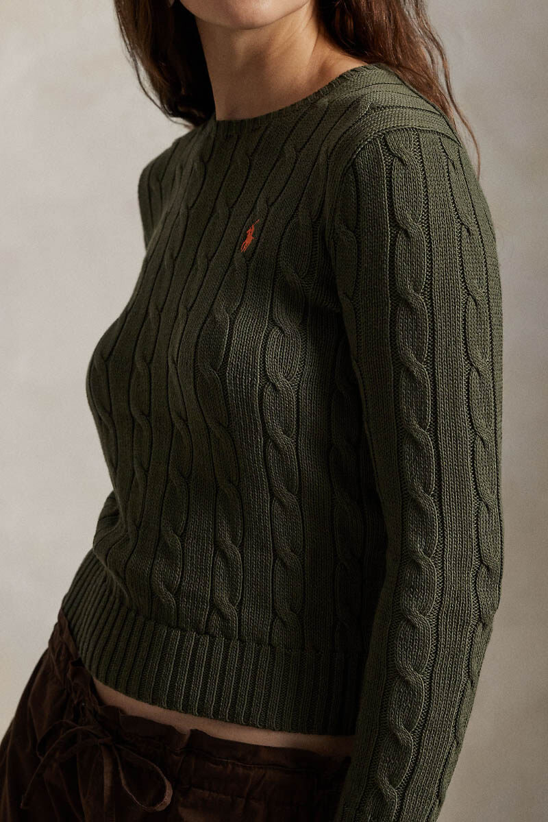 A cable knit sweater in soft cotton is the definition of luxury. Wear it over a white shirt with straight jeans and loafers, or combine with a silk skirt and coat for a look that is both casual and sophisticatedly elegant.Cable-knit top in cotton with a slim fit, round neckline, embroidered logo on the front and ribbed edges from Polo Ralph Lauren.