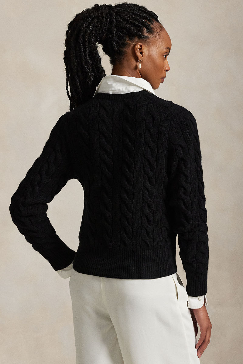 Cable-Knit Wool-Cashmere Cardigan, Polo Black