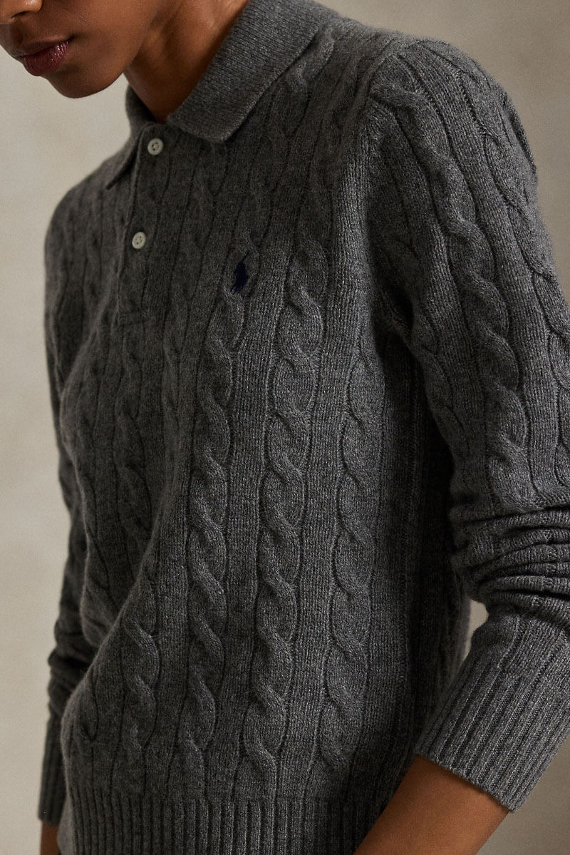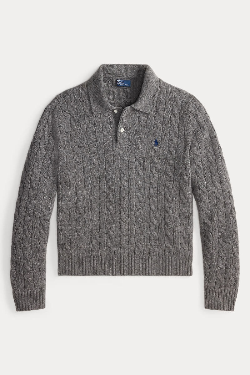 Classic cable-knit construction and a timeless Polo collar with buttons come together in this sweater, crafted from a soft blend of wool and cashmere. The distinctive cable pattern adds both texture and elegance, while the clean design makes it a versatile piece to wear season after season.