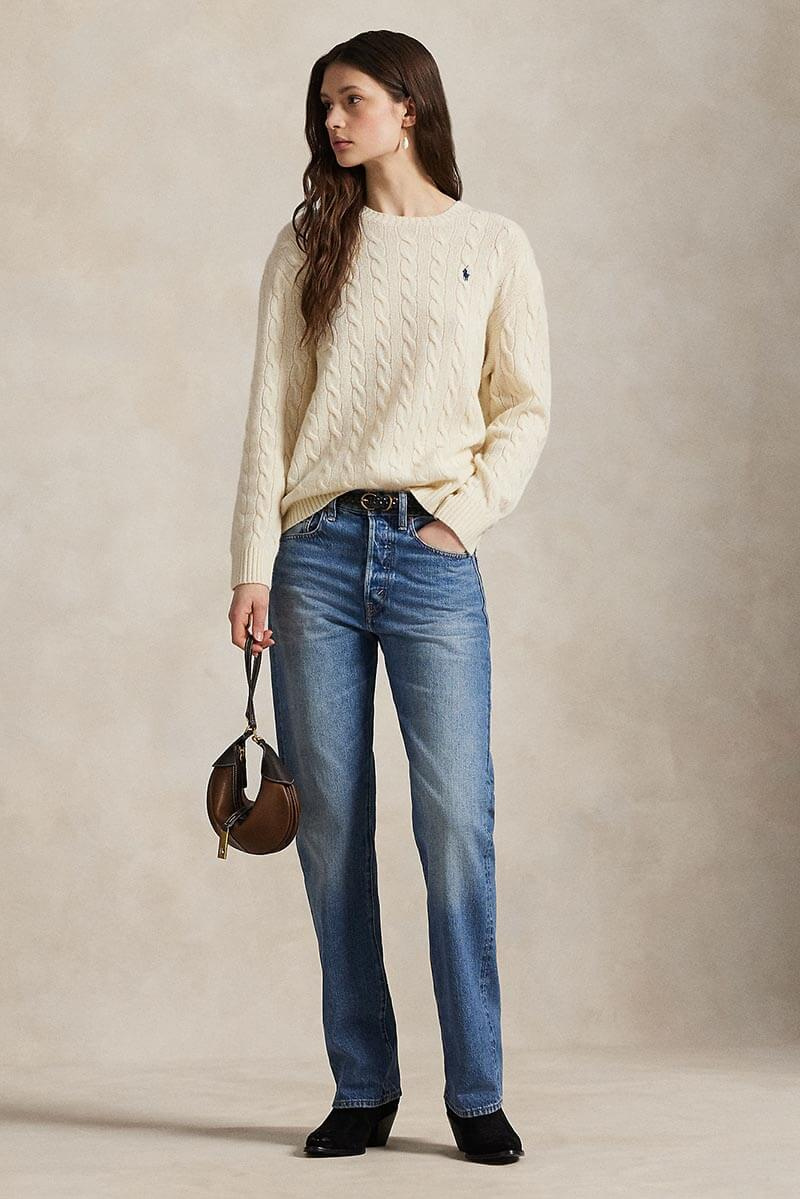 Detailed with traditional cables and a small embroidered pony at the chest, this is a fresh take on a timeless favourite, now in a new, more relaxed fit.
