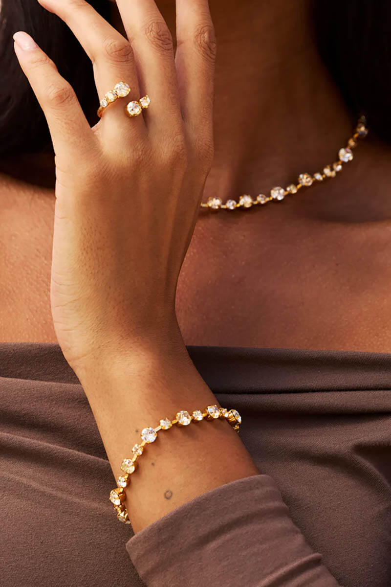 Adjustable necklace made in brass with 18K gold plating and Swarovski crystals from Caroline Svedbom.- 100% Nickel free