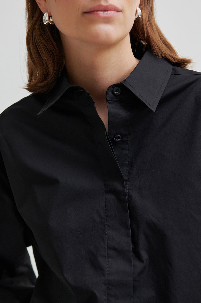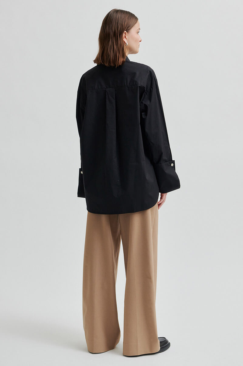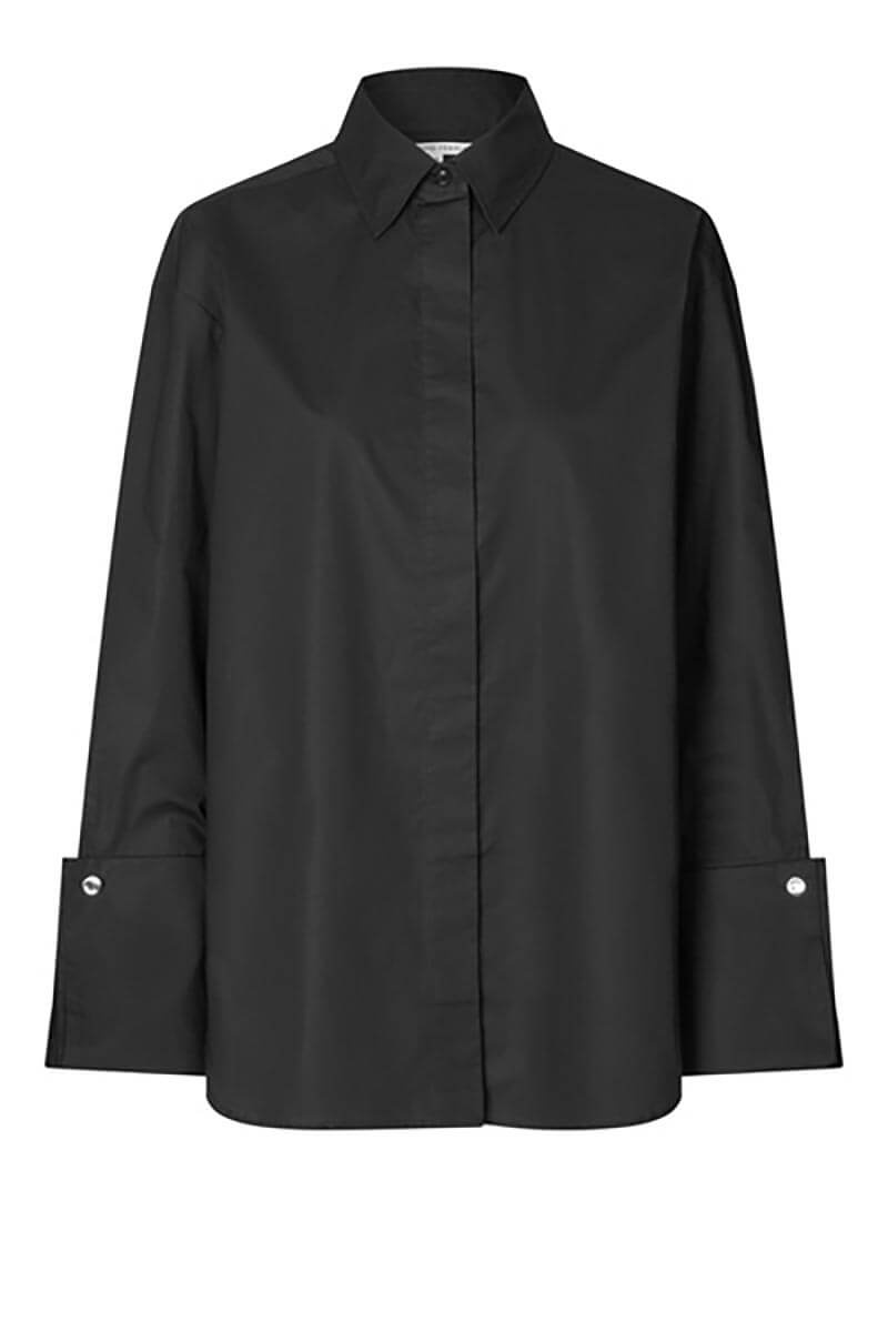 A super stylish shirt with beautiful sleeve details and a chic loose fit. The wide cuff with button fastening adds that little extra touch. Pair it with tailored trousers and heels, and you’re ready for dinner in no time.