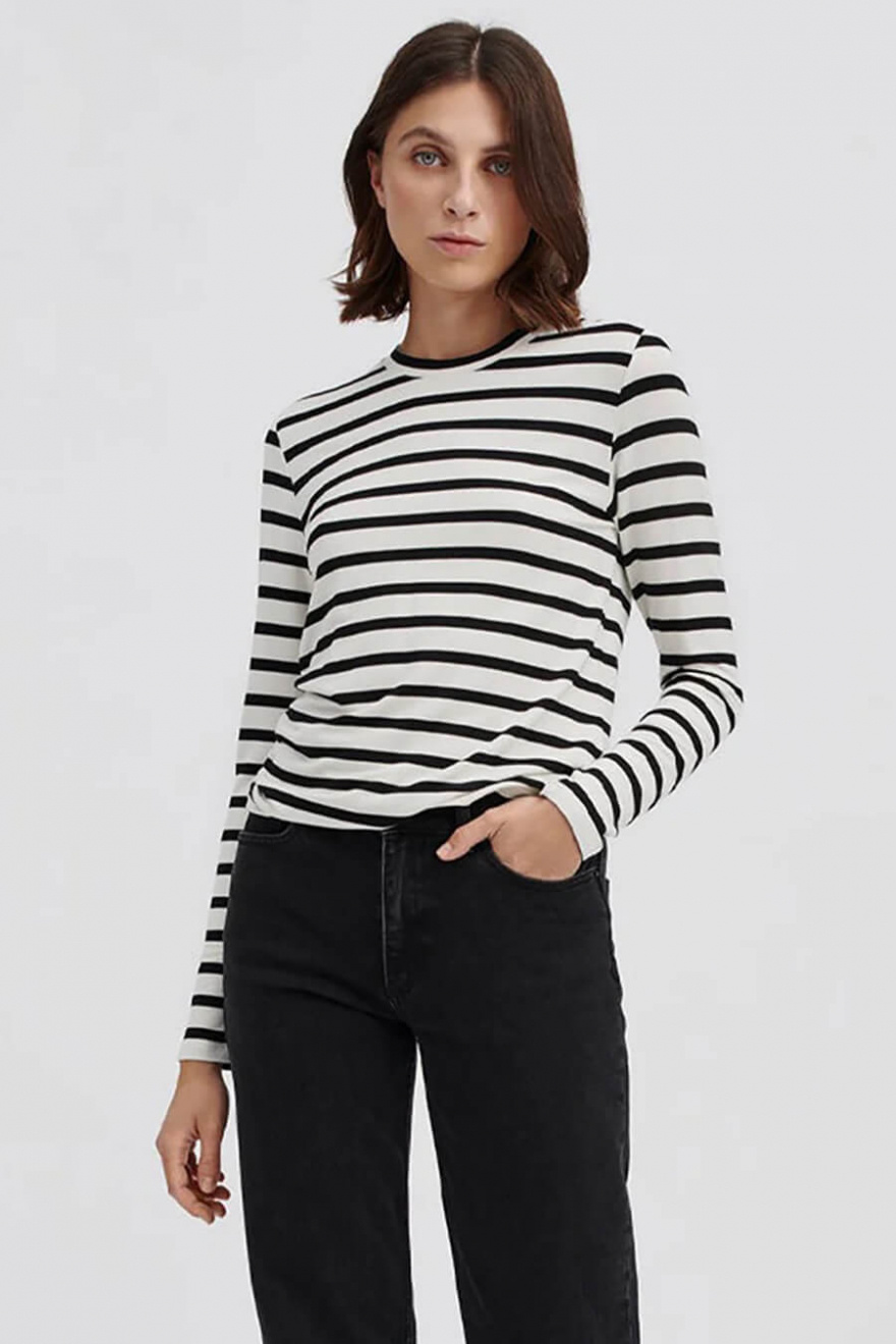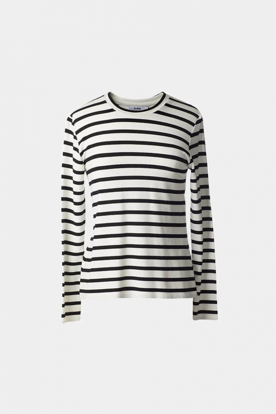 Striped top in a soft viscose blend with round neckline, long sleeves and slim fit from Stylein.- 95% Viscose 5% Elastane
