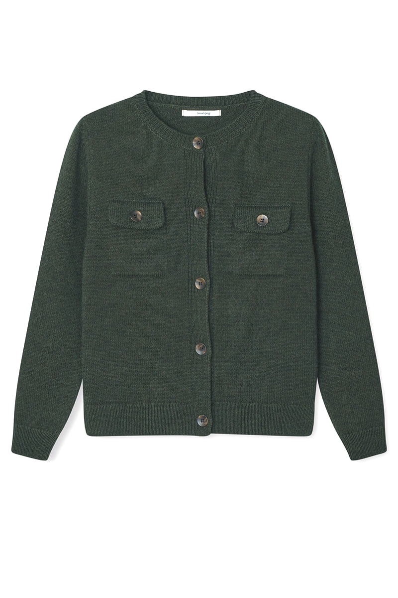 The cardigan that feels so classically stylish – imagine it with jeans, a scarf, and boots. The cardigan has front buttons and fits true to size. A nice detail with chest pockets.- 20% Superfine Alpaca