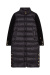 The black coat with knit sleeves combines timeless elegance with modern comfort. Style it over a silk blouse and slim trousers for the office, or with a knit dress and boots for the weekend. Perfect for layering with a sophisticated twist.Down coat with knitted sleeves, button closure front, high collar, small embroidered logo at the end of sleeve, pockets and straight fit from Busnel.