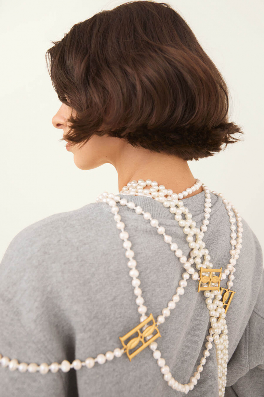 Timeless yet trendy – a pearl necklace that elevates any look. The classic pearls meet a gold-colored monogram logo for a modern twist. Perfect for everything from everyday jeans to evening dresses. A jewelry favorite to wear again and again.Necklace in freshwater pearls and gold colored monogram logo from By Malene Birger.
