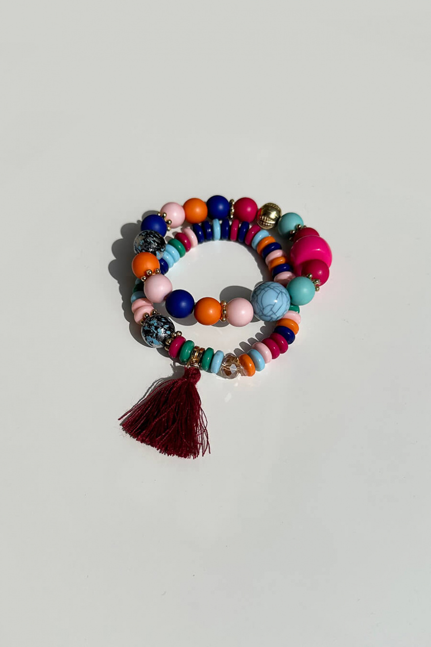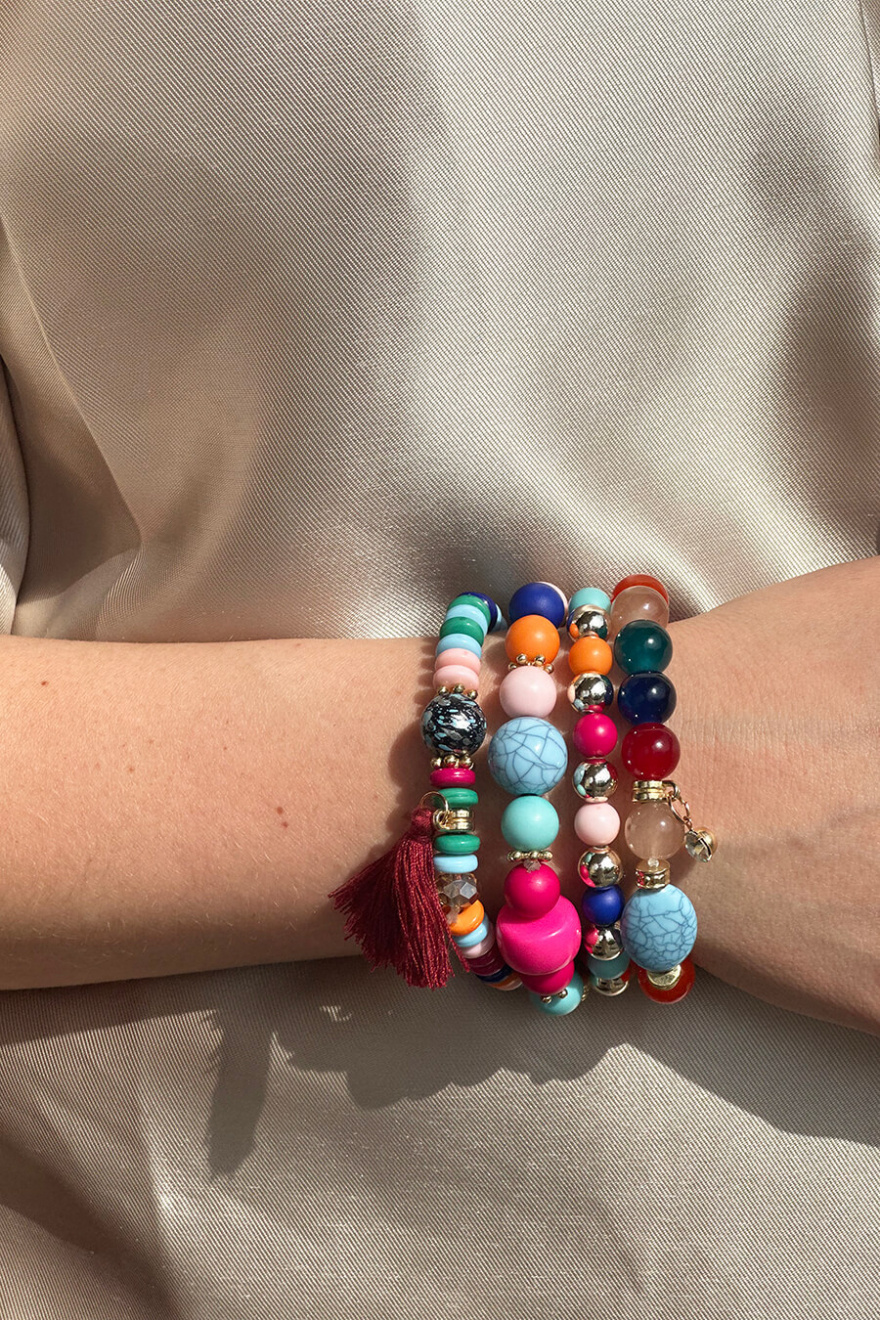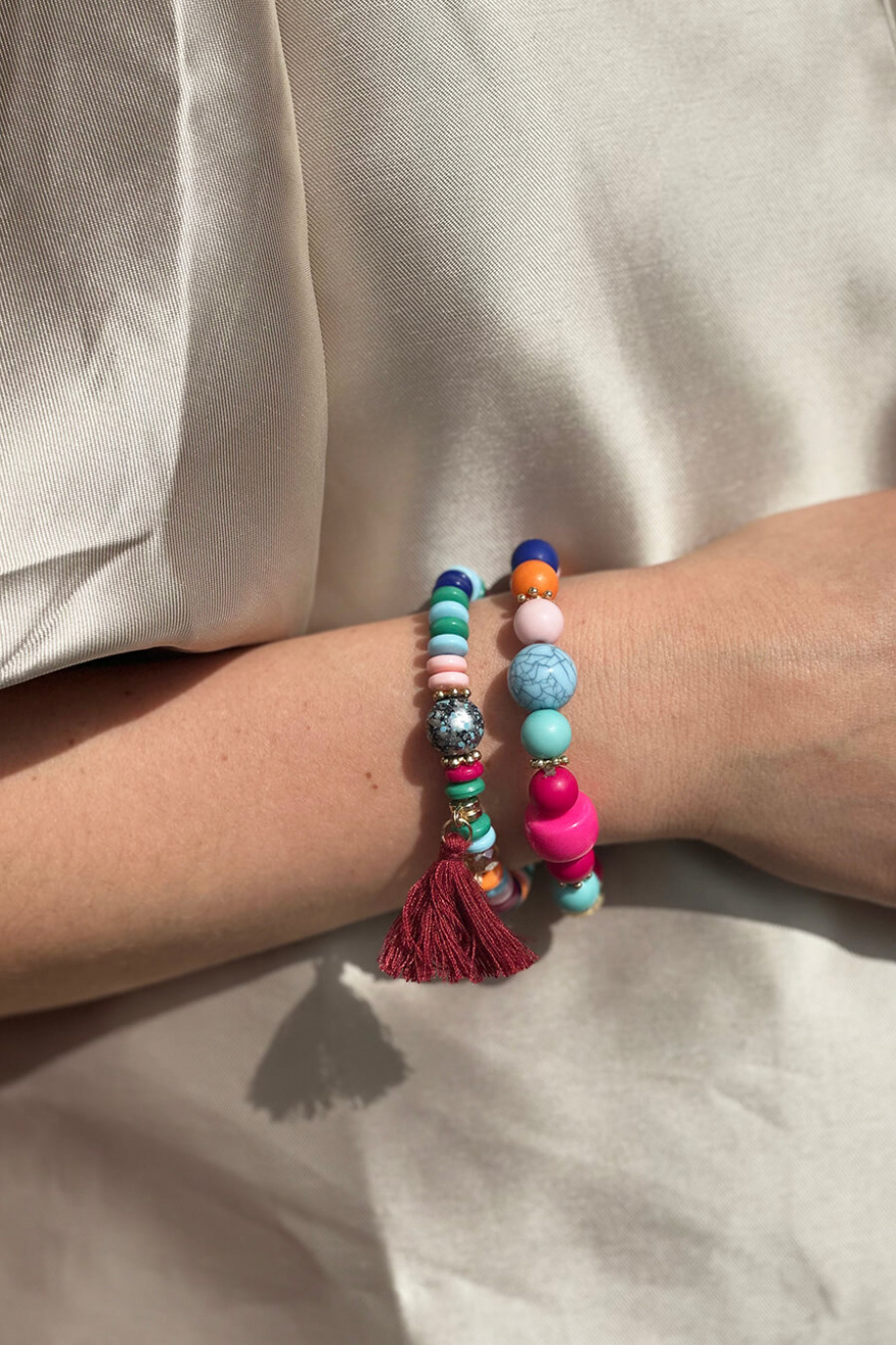 Our summer bracelets are finally here! From our own brand, we have produced pretty elastic pearl bracelets in fantastic colors that will brighten up your summer outfit. The bracelets are sold in packs of 2 and can easily be combined with other bracelets you already have in your jewelery box.- 100% Polyester