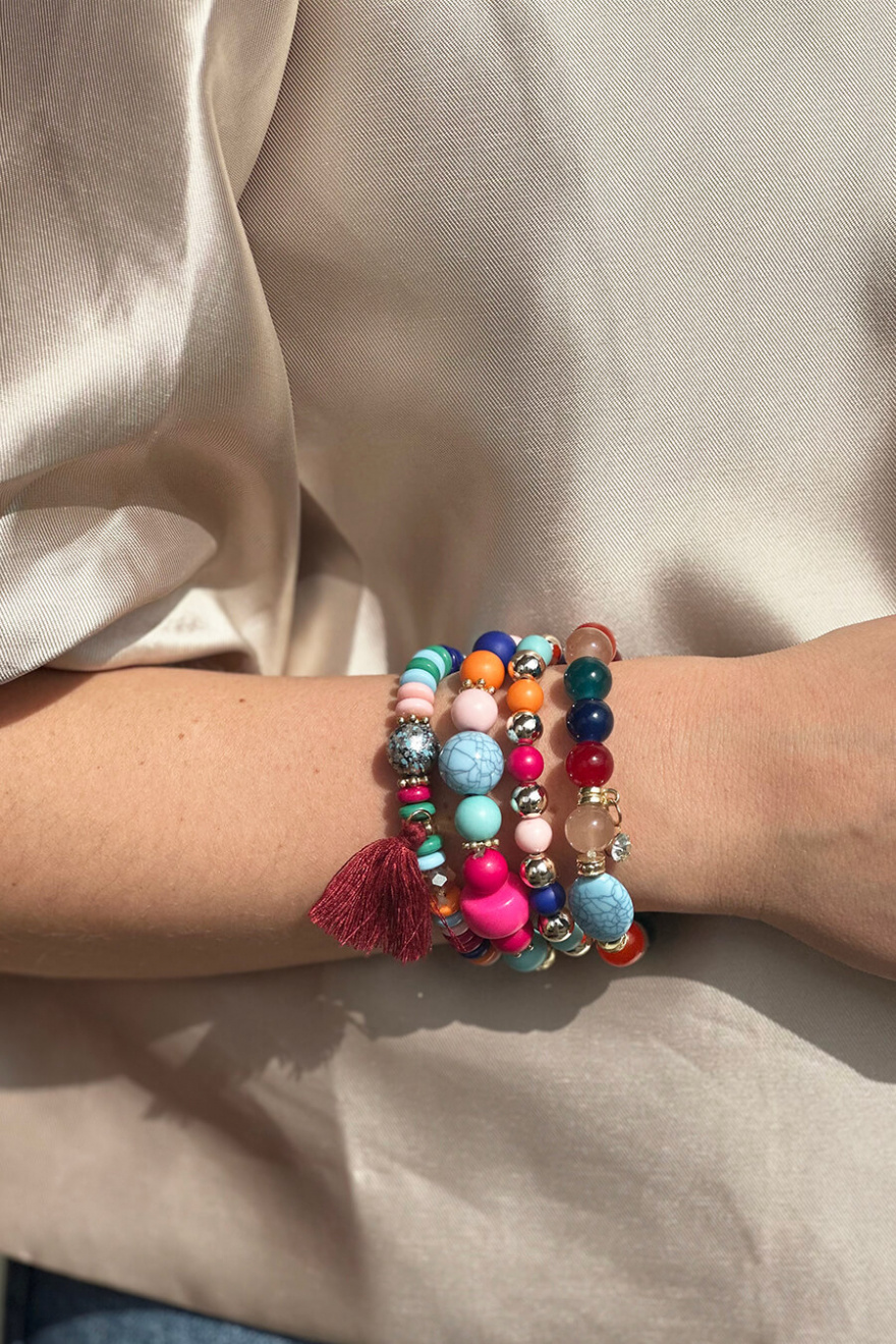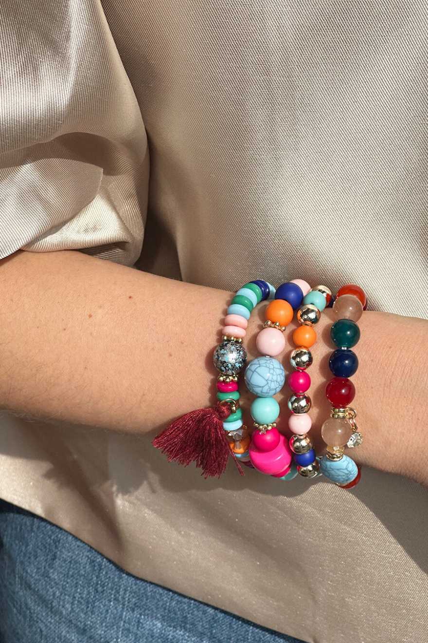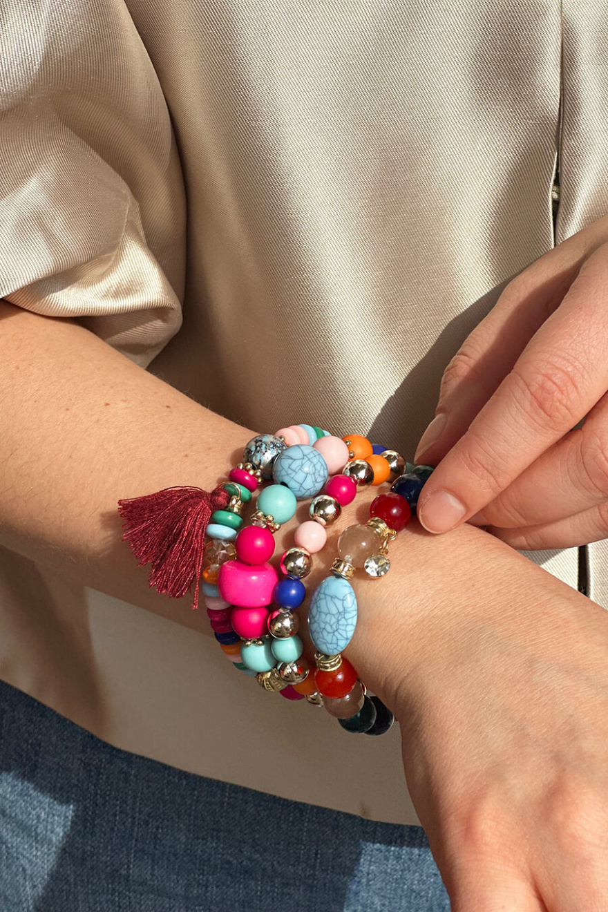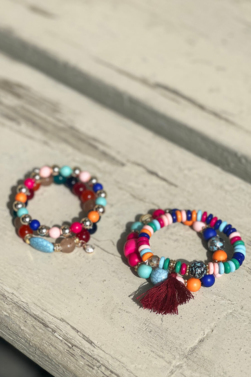 Our summer bracelets are finally here! From our own brand, we have produced pretty elastic pearl bracelets in fantastic colors that will brighten up your summer outfit. The bracelets are sold in packs of 2 and can easily be combined with other bracelets you already have in your jewelery box.- 100% Polyester