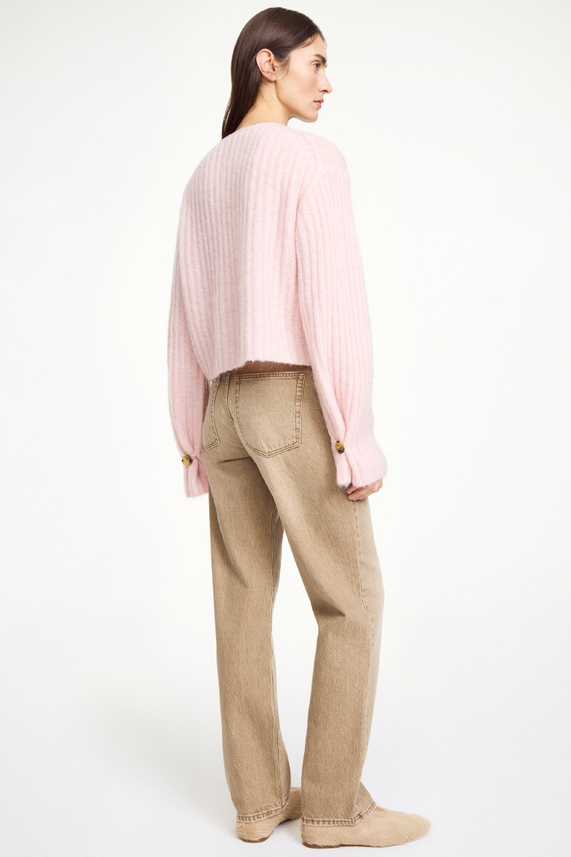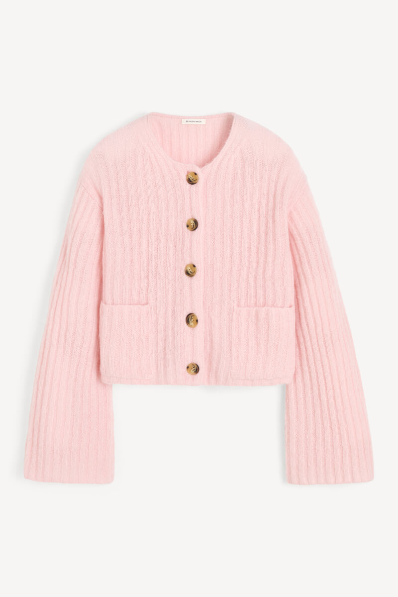 Cierrou Rib Cardigan, Chalk Pink