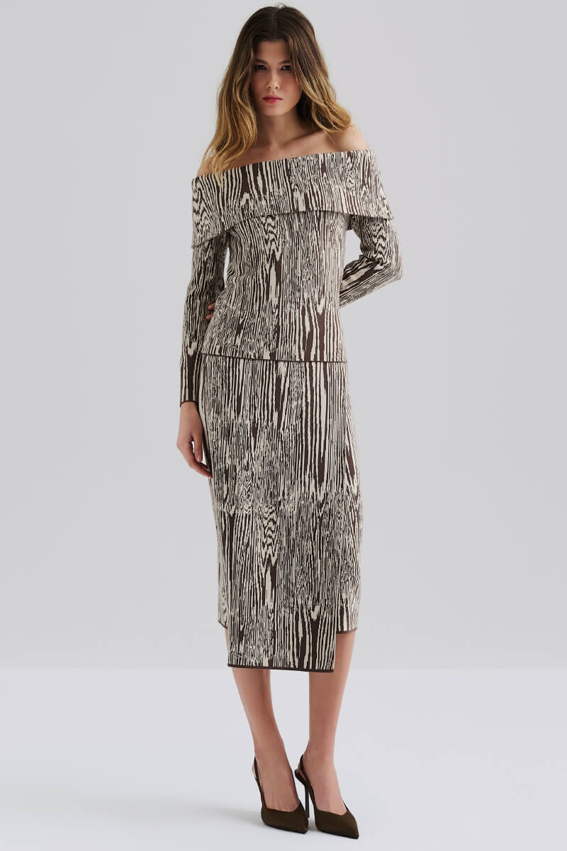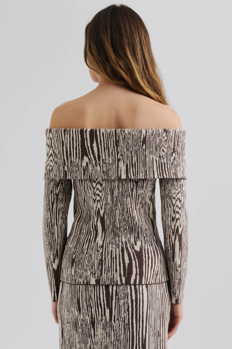 Cirella Jaquard Knitted Off Shoulder Top, Moire