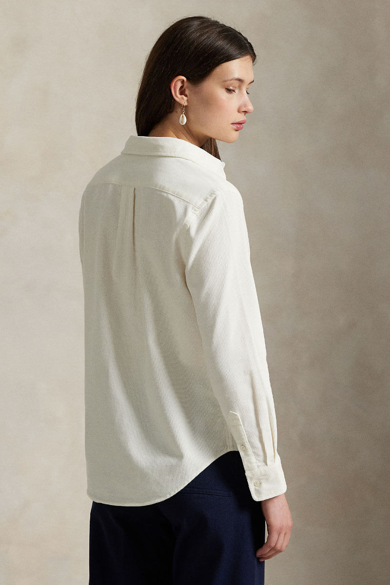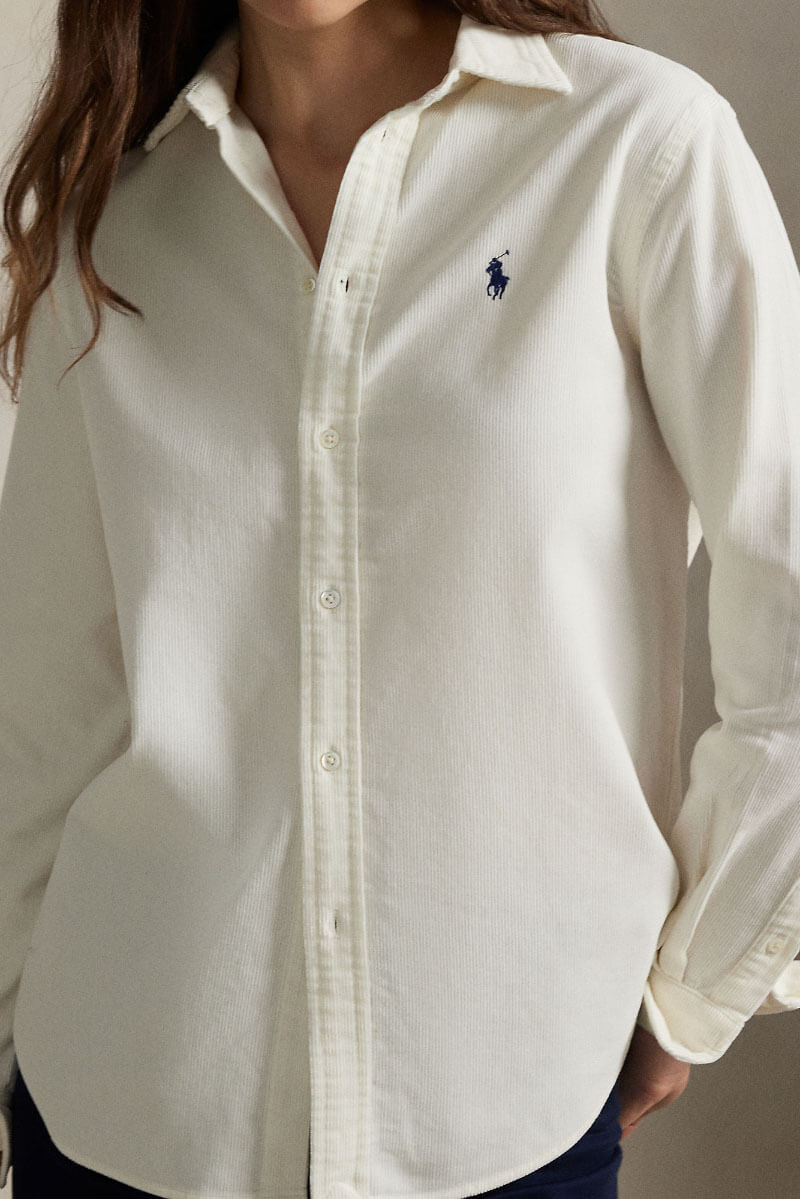 Fall's most casually elegant piece - a corduroy shirt! Style with jeans and boots for everyday simplicity, or a skirt and high boots for a more sophisticated look.Corduroy shirt in a stretchy cotton blend with button down collar, embroidered logo on the front, button closure and regular fit from Polo Ralph Lauren.