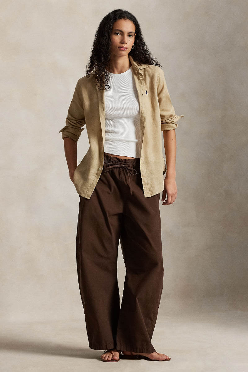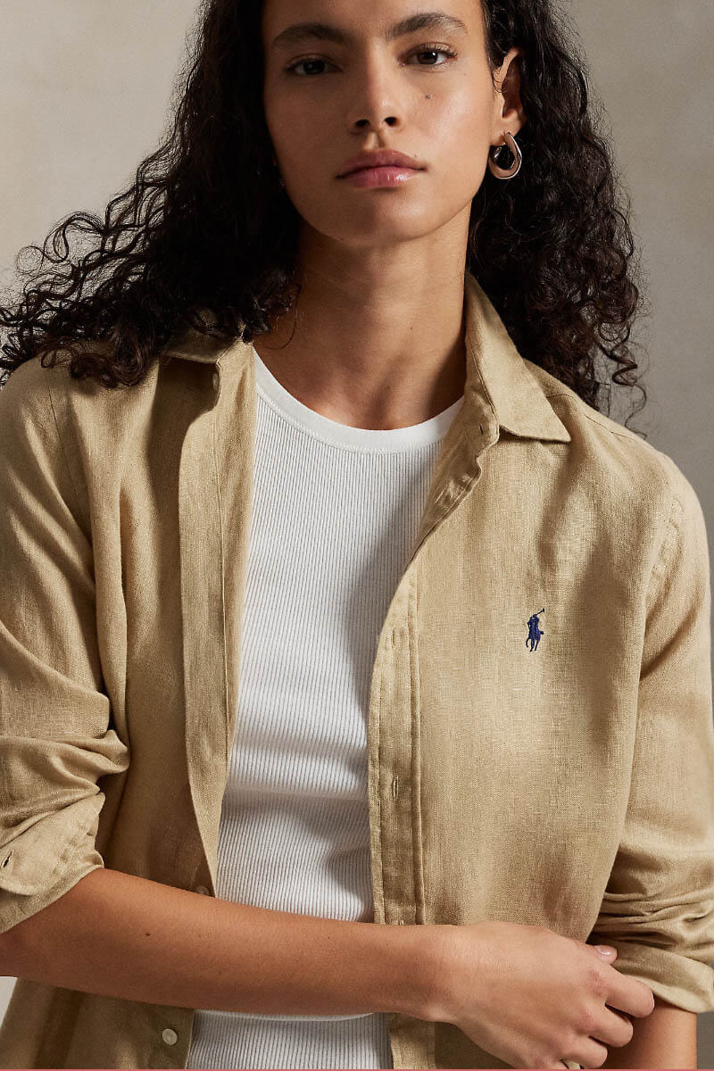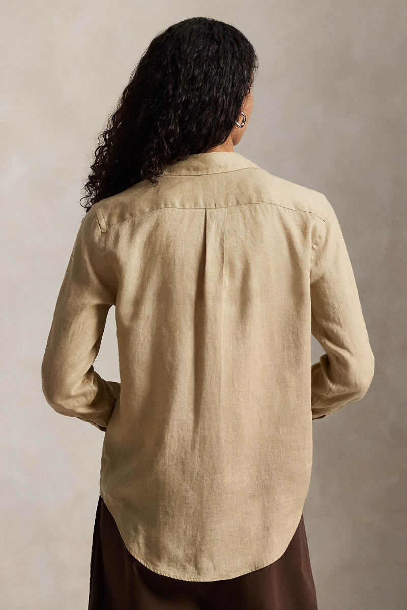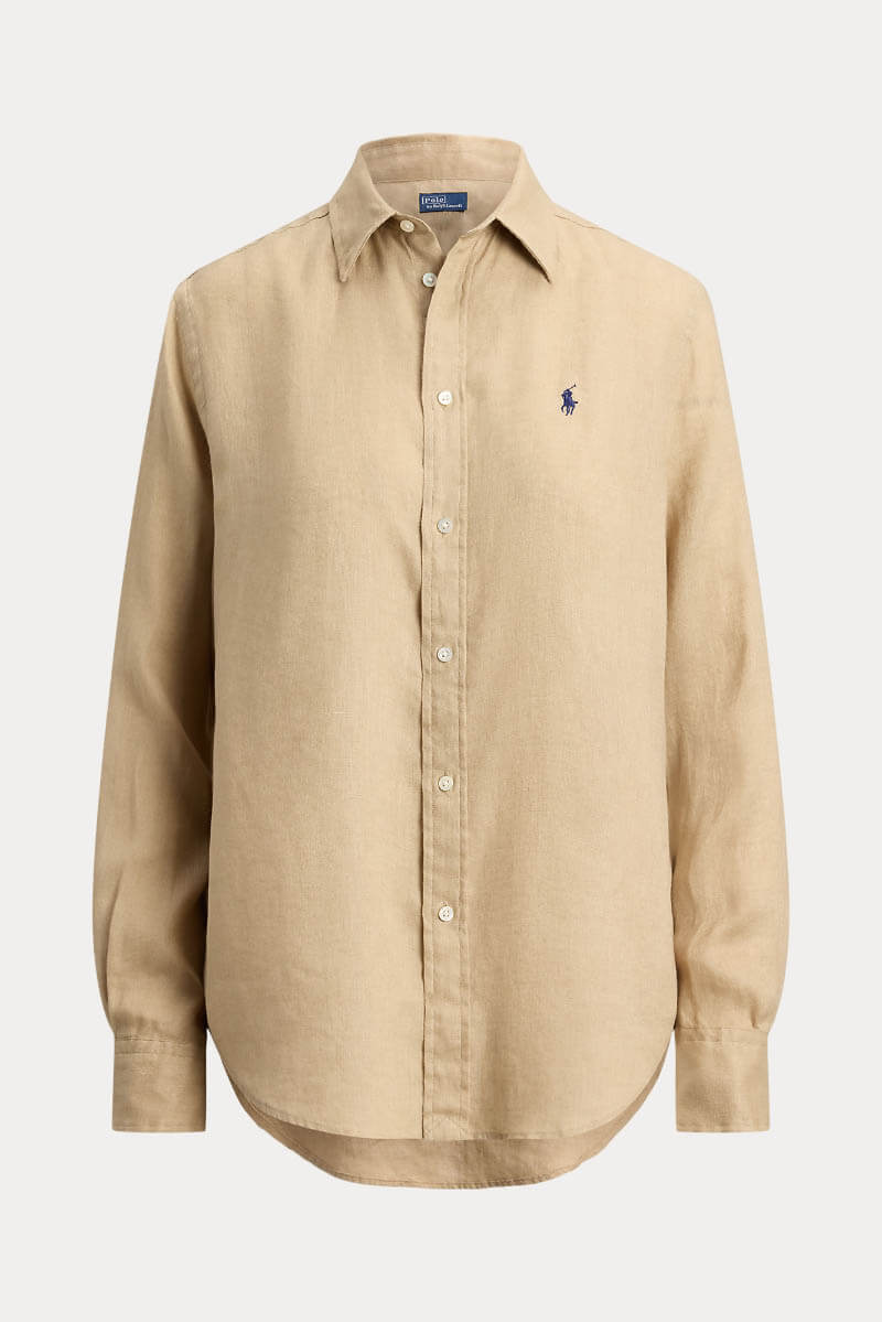 Linen shirt with a straight fit, point collar, and button front from Polo Ralph Lauren.- True to size, relaxed fit