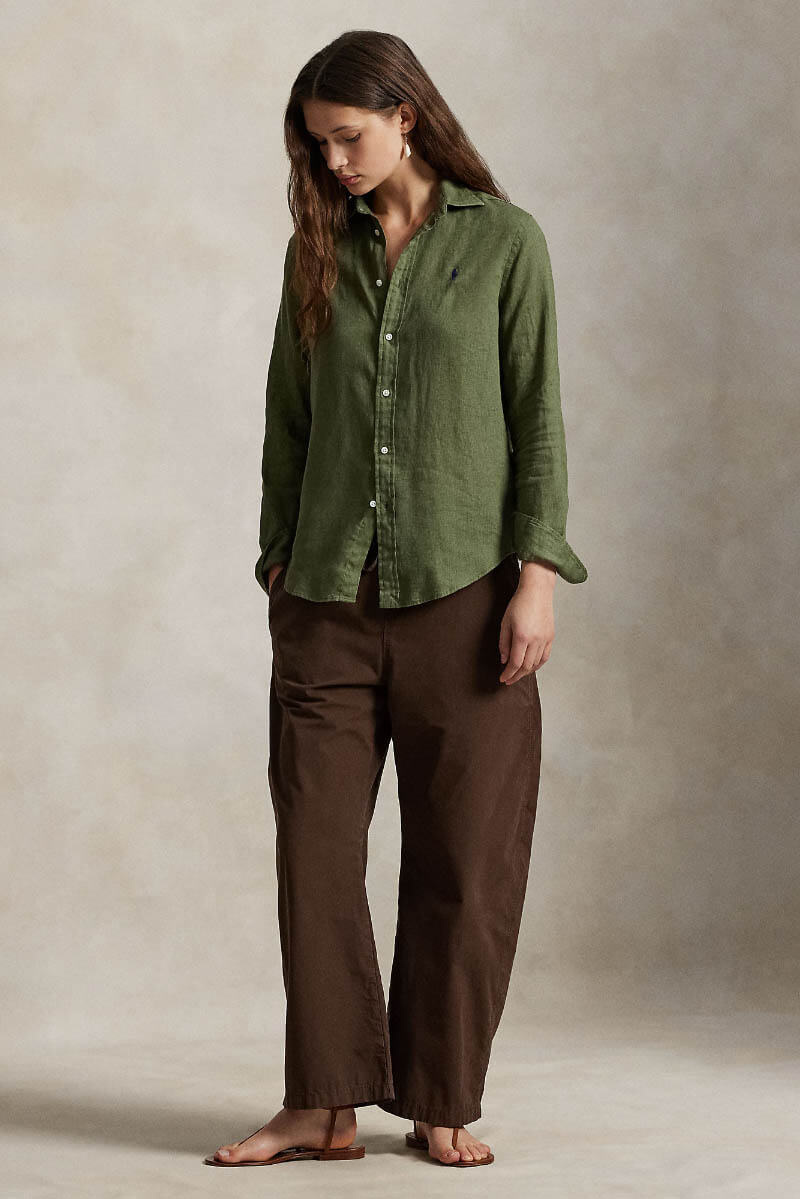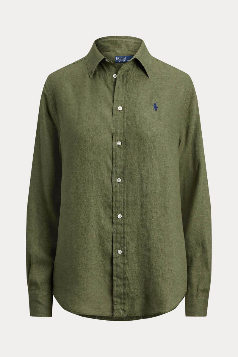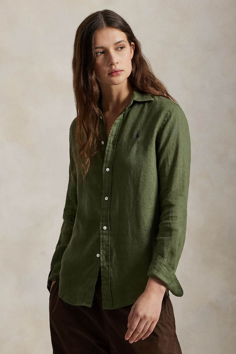 Linen shirt with a straight fit, point collar, and button front from Polo Ralph Lauren.- True to size, relaxed fit