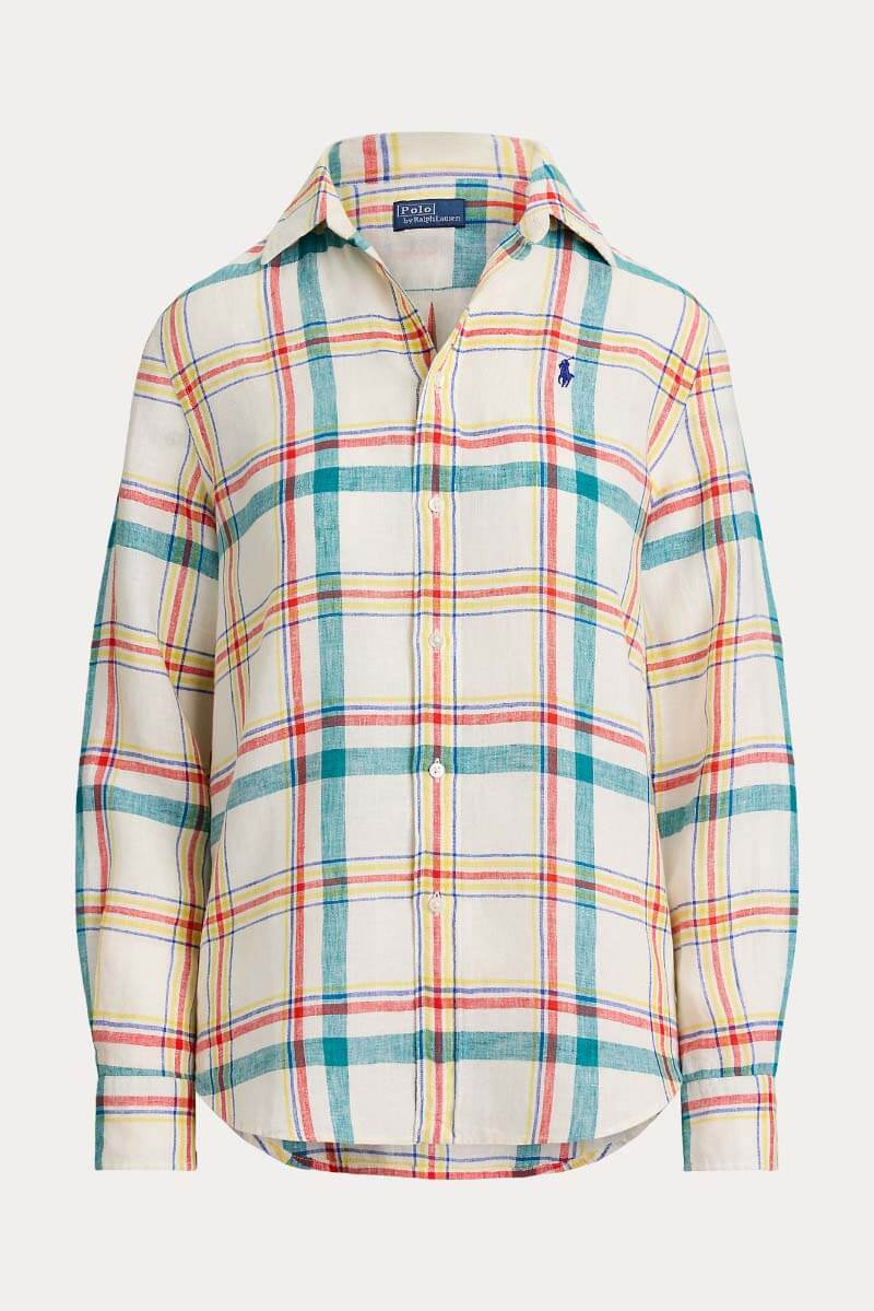 Linen shirt with a straight fit, point collar, and button front from Polo Ralph Lauren.- True to size, relaxed fit