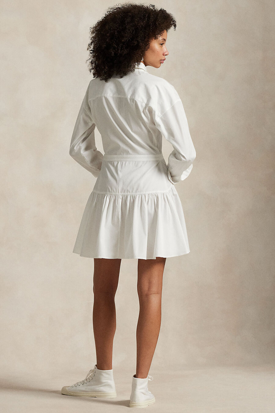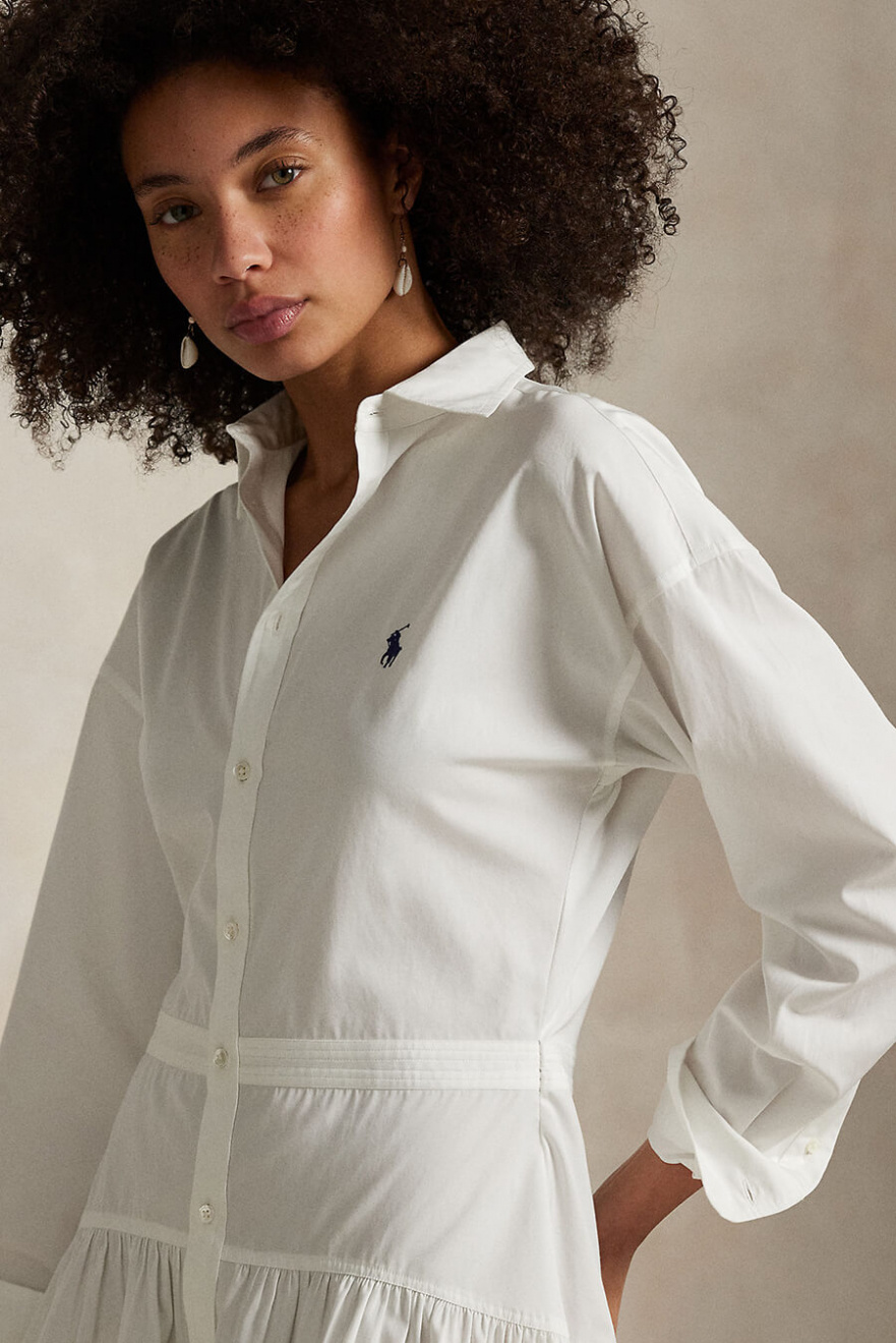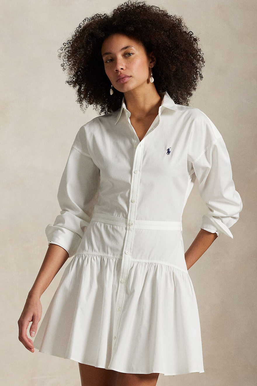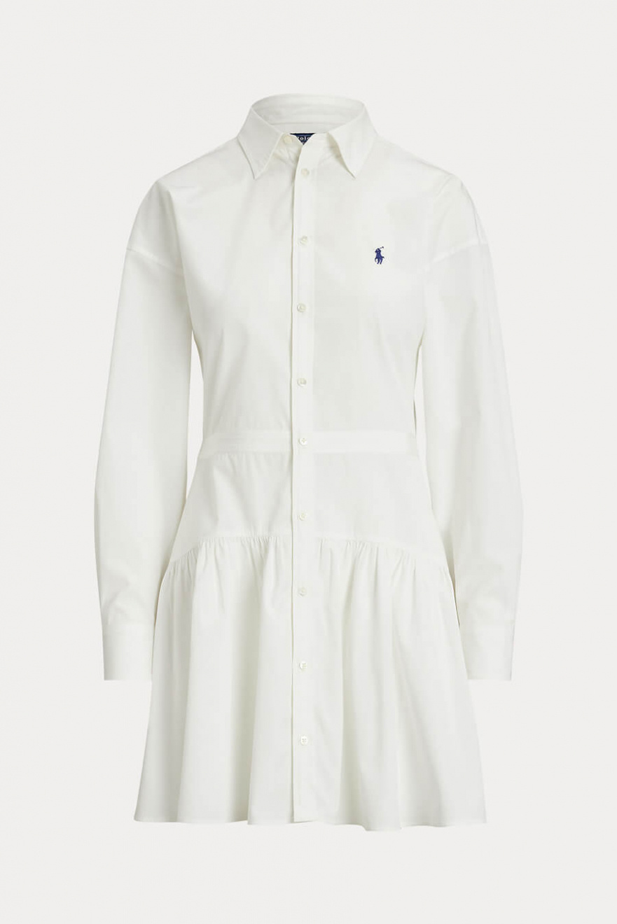 A short white cotton shirt dress that combines classic with a twist. The paneled skirt gives a sculptural feel – just as natural in the office as on warm summer evenings. A favorite you'll wear again and again.Shirtdress in cotton with loose fit, falling shoulder seams, small embroidered logo front and panel A-shaped skirt from Polo Ralph Lauren.