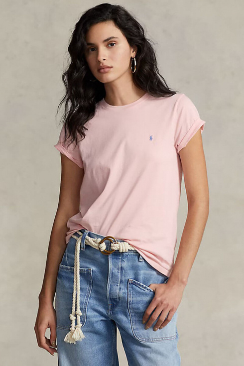 A pink t-shirt that balances simplicity and sophisticated charm. The soft shade adds a fresh touch to any outfit, while the stylish design makes it just as natural with denim as it is under a blazer.T-shirt in cotton with short sleeves, round neckline, regular fit and small embroidered logo front from Polo Ralph Lauren.